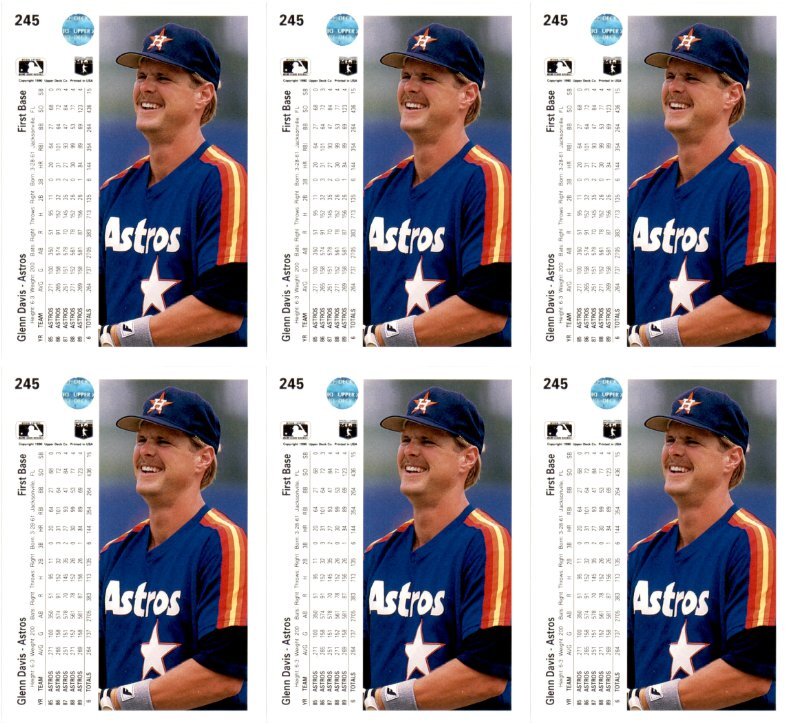 (6) 1990 Upper Deck #245 Glenn Davis Houston Astros Card Lot Condition: NM-MT