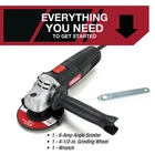 The Hyper Tough 6 Amp Corded Angle Grinder features a 6 AMP motor , adjustable guard, and 4-1/2 inch grinding wheel . It has a single speed of 12,000 RPM and accepts standard cutting or grinding wheels. The tool includes a spindle lock for easy wheel change , a metal wheel guard, and a screw-on side handle for left and right-handed use. The grinder comes with a wrench and 6 ft. power cord, providing smooth-running power for grinding and cutting on metal or masonry. The die-cast gear housing ensures durability and long-term wear. The Hyper Tough 6 Amp Corded Angle Grinder features a 6 AMP motor , adjustable guard, and 4-1/2 inch grinding wheel . It has a single speed of 12,000 RPM and accepts standard cutting or grinding wheels. The tool includes a spindle lock for easy wheel change , a metal wheel guard, and a screw-on side handle for left and right-handed use. The grinder comes with a wrench and 6 ft. power cord, providing smooth-running power for grinding and cutting on metal or masonry. The die-cast gear housing ensures durability and long-term wear. The New Hyper Tough 6 AMP Corded Angle Grinder with Handle, Adjustable Guard, 4-1/2 inch Grinding Wheel & Wrench comes with a powerful ball-bearing motor that provides smooth-running power to tackle the hardest grinding and cutting on metal or masonry. The die cast gear housing is durable for long term wear and tear. This angle grinder has a single, no load speed of 12,000 RPM with a top mounted slide lock switch. The tool accepts standard 4 1/2 diameter cutting or grinding wheels for either metal or masonry. The spindle lock allows for easy wheel change with the included mounting wrench. For protection from debris the tool also has a metal wheel guard which is adjustable for different angles of use. The screw on side handle can be mounted on either side for both left and right handed use. The Hyper Tough 6 AMP angle grinder comes with 1 grinding wheel, 1 wrench and a 6 ft. power cord. On Jul 4, 2025 at 01:17:15 PDT, seller added the following information: