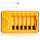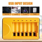 Smart Rechargeable AA Battery Charger】 AA AAA battery charger 6 bay for Ni-MH Ni-CD rechargeable batteries can charge any quantity in any slot. Single, double or triple ones can be charged, and not necessary to put them in neighboring slots. Besides, you can also mix charge AA and AAA batteries, as long as they are Ni-MH or Ni-CD batteries. 【Safety Protection】Comes with special charge and discharge management circuit. With multiple security protection settings, battery charger aa can effectively prevent reverse, short circuit, overcharge, over discharge, over-current damage to the battery, which makes users using the product without any safety concern. 【LED Indicators Charging Display】 This aa aaa battery charger with Red/Green led light display, And the aa rechargeable battery charger will display the status of each rechargeable battery when you insert a battery to charge, the light will turn solid red, only on the port(s) containing the battery, to indicate the battery is charging. The light turns solid green when charging is complete. 【USB AA Battery Charger】USB Powered Universal Intelligent Battery Charger, allows for on the go worldwide portability.the USB charging line can be connected to USB socket, car charger, computer, phone adapter, other USB output equipment to charge.