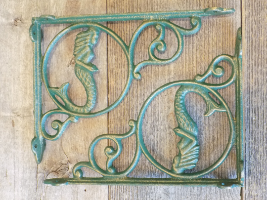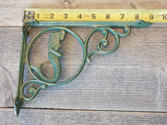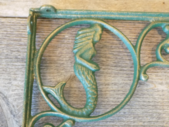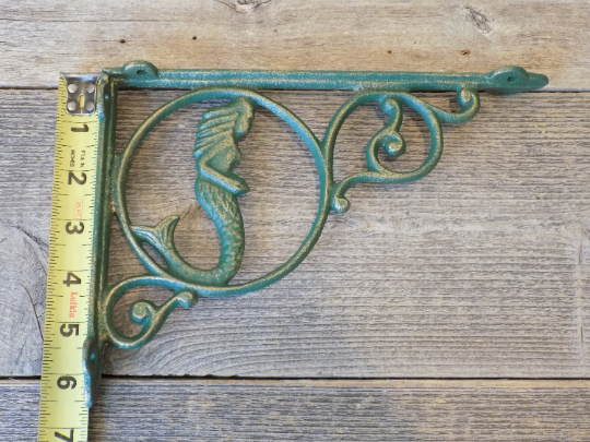FOR SALE ARE 6 CAST IRON MERMAID BRACKETS! STRONG AND STURDY! THESE STICK 9" OUT FROM THE WALL AND 6 1/2 TOP TO BOTTOM! WORN LOOK! GREAT FOR WHOLESALE OR PERSONAL USE! SHIPPED OUT WITHIN ONE DAY, PRIORITY MAIL, SO YOU CAN GET FAST! FREE SHIPPING!