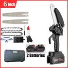 eBay Description: 【 UPGRADED ELECTRIC CHAINSAW】 We has launch ed a upgrade handh eld small mini chainsaw, It is 6 -inch electric saw, come with a 2x 6-inch saw blade and 2 x 6 " chain for replacement 【HIGHLY EFFICIENT HANDHEDLD CHAINSAW】 The rechargeable mini chainsaw, has been deeply quenched to ensure smooth cutting , the wooden teeth design can make the chain saw stuck on the branches, cutting more efficiently and faster. The handheld wireless mini chain saw takes about 8 seconds to cut a log with a diameter of 1 8 cm (the specific value varies with the actual size and hardness of the wood). 【 ONE-HANDED OPERATION CHAINSAW】 This handheld mini chain saw body weighs just about 1.54lbs(Excluded battery) and a total length 13inch. Cordless chainsaw has a non-slip handle, is ergonomically designed, you only need to hold it in one hand to do the work, even women can effortlessly use the chainsaw to wood cutting, tree pruning and gardening without a sore hand. 【 SAFETY CHAINSAW 】 This small chainsaw has a safety switch, you need to hold down the safety lock and trigger at the same time to start the saw to prevent accidental; Anti-splash baffle prevents wood chips from splashing during work. 【 LARGE CAPACITY BATTERY】 O ur Rechargeable cordless chainsaw is equipped with 2 * 120 00mAh lithium batteries and fast charger. Lithium-ion batteries with overload and temperature protection provide a much longer battery life. When fully charged, the battery mini chainsaw can cut branches continuously for 20-30 minutes, charging time is about 3 to 4 hours. 【 Wide range of applications 】 Mini chain saw is an excellent alternative for all kinds of the household, garden, yard, or farm projects. It is suitable for wood cutting, tree limbs chopping, branch pruning, gardening and more. Perfect Gift for Dad, Friends, husband, DIYer Package: 1 x carry box , 2 x battery, 1pairxGloves 1x Protective Goggles 2 x 6-inch saw blade, 2 X 6'' chain, 1 x Charger, 1 x Screwdriver 1xUser's manual 1x lubricating oil