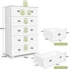 Product Description About this item 【Large Capacity Storage 】Assembled dimension: 31.5" L x 15.75" W x 45.3" H. The vertical dresser features 6 deeper (6.1inch) storage drawers to maximize storage capacity without taking up much horizontal space. Can store your clothes, toys, books etc, making it easier for you to sort and store clutter 【Durable ang Stable 】SEJOV white dresser tall is made of high-quality engineered wood, water-resistant finish that is easily cleaned and maintained to ensure a prolonged. 5 Legs design and anti-toppling device provide great stability 【Chic Design】This wooden drawers has sleek white lacquer finish, silver shell handle, unique carved lines, give people a a touch of mystery, elegance. Easily matches any decor style, adding character and charm to your home 【Versatile Dresser Chest】The 6 drawer dresser is suitable for wherever you want to keep tidy and organized, such as bedrooms, nurseries, playrooms, and entryways, and matches perfectly with other SEJOV storage organizers 【Easy Assembly & Good Service 】Hassle-Free Assembly is allowed with straightforward instructions and labled pieces. Any questions please contact the service team will respond in 24H -Make full use of vertical space storage, this 6 drawer dresser with 2 sizes of drawers occupies little space to expand storage space. -Combining modern and retro designs. -Perfectly fit in various living spaces such as living rooms, bedrooms, hallways, entryways, and nursery rooms Product Size 31.5“L x 15.75“W x 45.3"H Material High-grade thickened MDF, Metal Large Drawers Dimension 13.8"D x 30.3"W x 8.5"H Small Drawer Dimensions 13.8"D x 15"W x 8.5"H Large Drawers Load Capacity 26.5 lbs Small Drawers Load Capacity 13.2 lbs Desktop Load Capacity 99.2 lbs Package 1× 6 Drawer Tall Dresser, 1× Instruction, 1× Accessory Bag Anti-fall Devices Back Reinforcement Panels Solid Construction Warm Tips: 1.Put the screws in loosely until all pieces are together and then tighten them all. It will save your time if you make a mistake when installing. 2.Faster and easier to install with an electric drill.