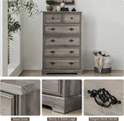 Product Description Feature : 【Ample storage space】 Assembled dimension: 32''W x 16''D x 48''H. This wood dresser is designed with a spacious interior. The drawers won't collide or collapse. And the chest provides an appropriate height to place the potted plant or a printer. 【Handy design】 Dresser with 6 large drawers are all equipped with wide slides, get painstaking treatment for smooth gliding and easy use. The brackets allow the drawers to come out of the dresser, clothing and socks can be stack to conserve space. 【Sturdy and safe construction】 Come with anti toppling devices, the tall cabinet made from warp-resistant particleboard for long-lasting construction, no wiggle, protect your family from potential dangers. 【Easy to assemble】The packaging is equipped with instructions and an accessories bag, all parts included in your package are pre-numbered and pre-drilled. With a step-by-step manual, the cabinet is easy to install individually. Specifications: -Product name : Large capacity storage drawer Chests -Style: Retro Max. Static Load Capacity of the Tabletop: 150 lbs Max. Static Load Capacity of Each Drawer: 50 lbs -Size: 32''W x 16''D x 48''H 4 x Drawer size: 27.75''W x 14''D x 5.75''H 2 x Drawer size: 13.25''W x 14''D x 5.75''H Large Capacity Meet Your Bedroom Storage Needs for Large Items Stable and Sturdy Wood Legs 4" thick Wooden Legs to ensure wood dresser robust stability and large weight capacity. Sequential Drawer Numbering for Accurate Installation Please ensure drawers are placed in corresponding order as per their numbers for precise and hassle-free installation. On Jun 14, 2024 at 11:36:42 PDT, seller added the following information: On Aug 12, 2024 at 23:48:24 PDT, seller added the following information: