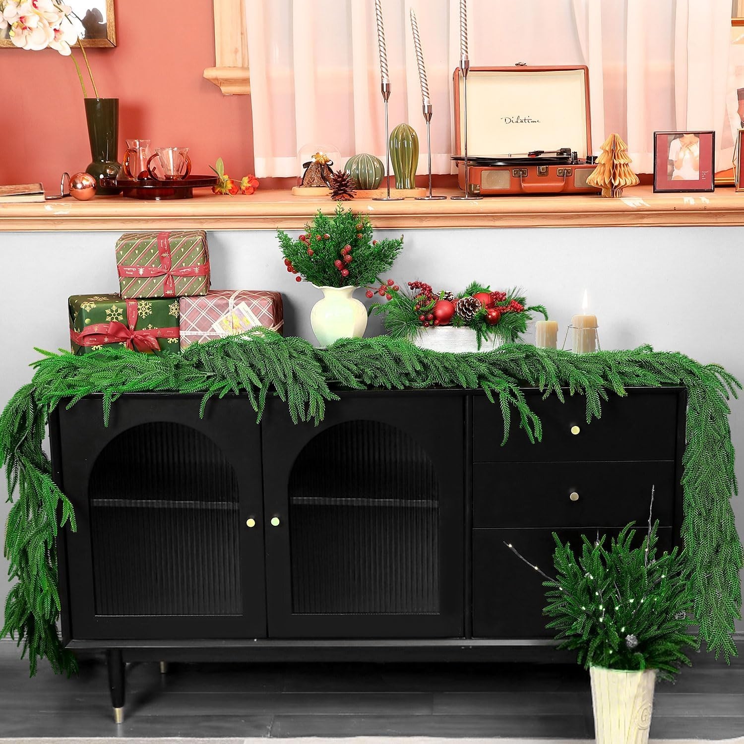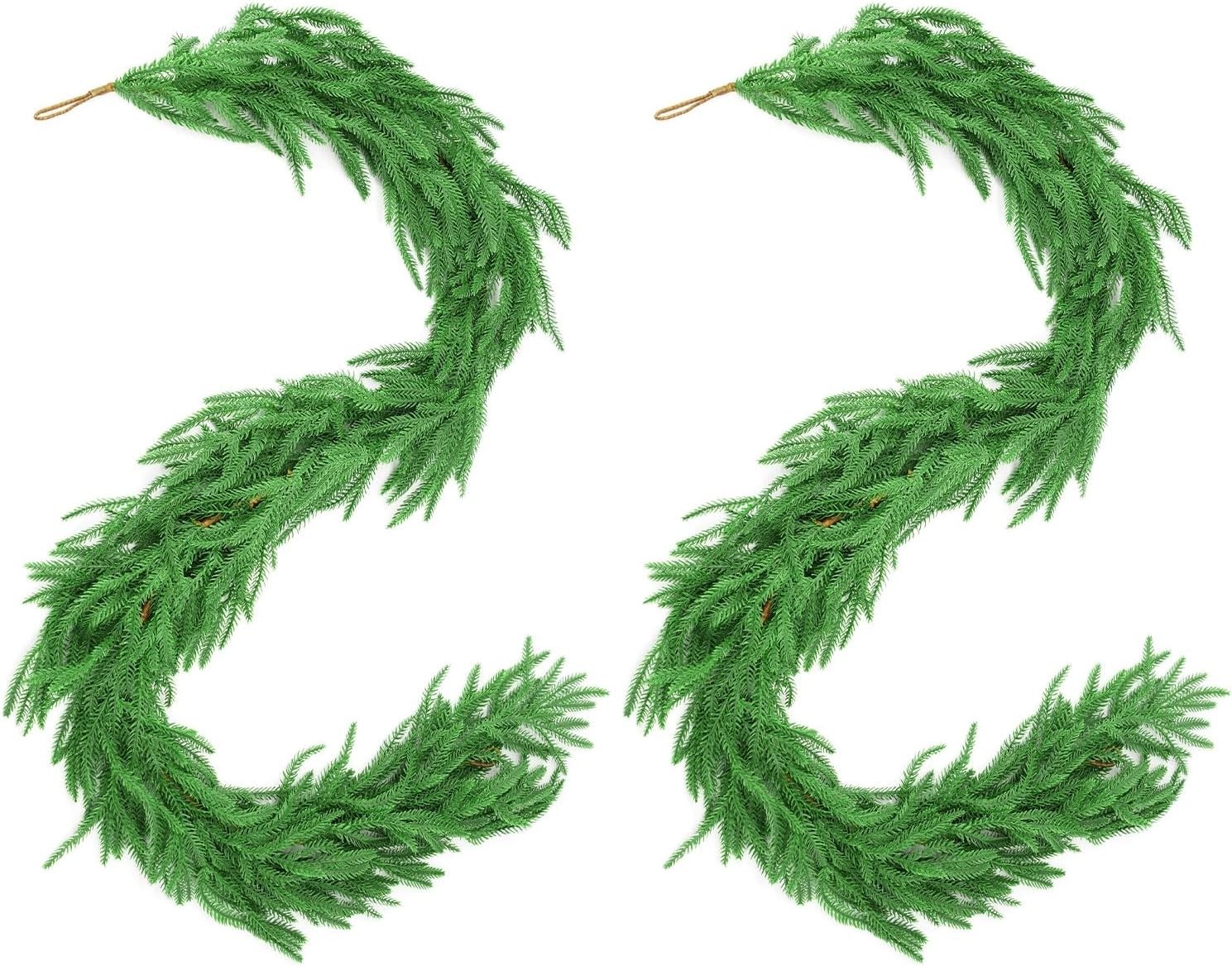 Realistic Norfolk Pine Garland with Premium Real Touch: Crafted from high-quality, soft PE material, our Norfolk Pine garland mimics the look and feel of real evergreen foliage. Its lifelike texture, vibrant green color, and flexible branches hold their beautiful, natural shape perfectly for stunning Christmas decor anywhere Effortless Indoor & Outdoor Christmas Decorations: Transform any space instantly! This incredibly flexible pine garland easily drapes over mantles, wraps banisters, adorns walls (wall decor), frames doorways, or enhances tables (Christmas table decorations). Perfect for indoor Christmas decorations and durable enough for outdoor Christmas decorations to bring festive cheer everywhere. Great Value: 2 Pack of 6ft Dense Garlands: Get abundant, lush greenery! Each set includes 2 Pcs of premium 6ft Norfolk Pine garlands. The generous length and quantity provide full coverage, creating a rich, professional look for home decor, fireplaces, staircases, or as Christmas tree garland accents – a fantastic value for your Christmas decorations Long-Lasting Beauty, Zero Maintenance: Enjoy vibrant, realistic Christmas garlands year after year! Unlike real pine, this artificial Norfolk pine garland stays fresh and green without watering, shedding, or fading. Its durable construction withstands the elements for outdoor Christmas decor, ensuring lasting Christmas decorations without any upkeep Ultimate Versatility for Every Festive Scene: The perfect foundation for all your Christmas decorations! Use these lush garlands for decoration Christmas magic on mantles (Christmas garland for mantle), tables (Christmas table decor), walls (Christmas wall decor), windows, porches, or even create custom arrangements with Norfolk pine stems. Ideal for home decor during holidays and beyond