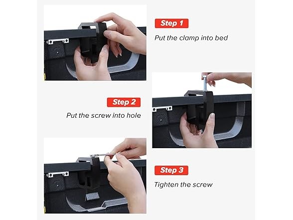 6 PC Heavy Duty Topper Mount Clamps Condition: New Size: For: Chevy Silverado Sierra 1500/2500/3500; Dodge, Ram 1500/2500/3500, F150 F250 Features 【TRUCK MOUNTING CLAMPS】 Package includes 8 black clamps. For truck topper clamps, ladder rack clamps, truck bed clamps, and truck cap clamps.the item is a set of 8PCS, which can meet your various installation needs, provide convenience for your travel, and is easy to install, which greatly saves your time. 【EASY TO INSTALL】The truck mounting clamp is used to install around the mounting bracket of a large camper or truck lower lip. The bolts can be tightened quickly with a wrench or a ratchet without drilling 【FITMENT】 Compatible for CHEVY: Silverado / Sierra 1500, 2500, 3500.Compatible with Silverado / Sierra '07;Cargo Rail; DODGE: Dakota; Ram 1500, 2500, 3500; FORD: F150 F250; MITSUBISHI: Raider; NISSAN: Titan;TOYOTA: Tundra 【FUNCTION】Designed for mounting truck caps with fiberglass or aluminum rails. 【MATERIAL】Aluminum, high quality and strength, hard to be corroded. Specs In the Box: (1) 6 PC Heavy Duty Topper Mount Clamps