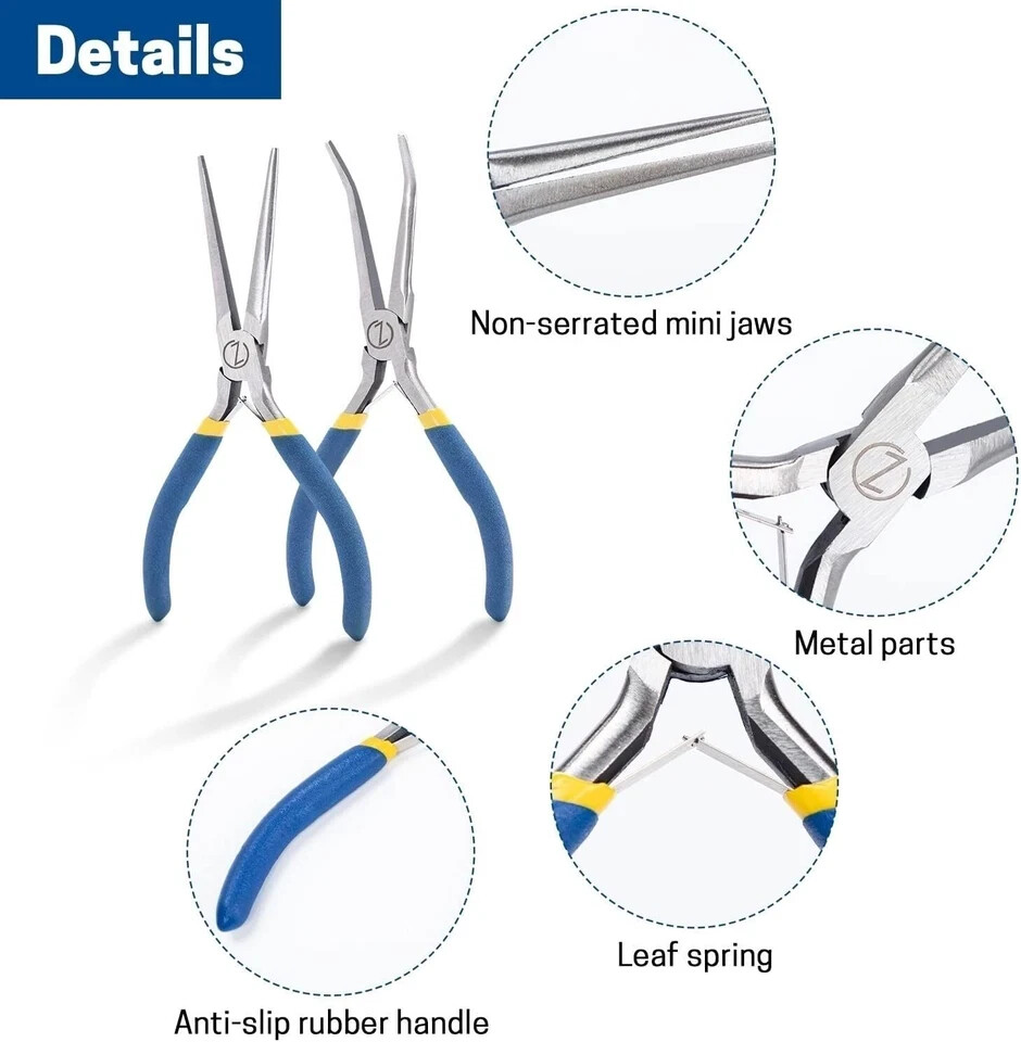 100% Money Back Guarantee if you are not satisfied with your purchase! ___________________ Description: What You'll Receive: 2PCS needle nose pliers set includes a 45-degree angle needle nose plier and a straight needle nose plier. Both measuring six inches in length. Long-Lasting Material: Crafted from drop-forged carbon steel with professional heat treatments, these mini needle nose pliers are coated with anti-rust nickel, ensuring durability, wear resistance, and long-lasting performance. Handy Helper: The elongated design of the long needle nose pliers, featuring fine tips, allows easy access to tight spaces for intricate projects like wire bending, jewelry making, industrial and mechanical maintenance, electrical work, instrument repairs, and household appliance fixes. Quality Handle: With anti-slip rubber handles, these small needle nose pliers offer a secure grip even in wet conditions, making them ideal for use in various environments. The handles are also insulated for comfortable use in cold weather. Care Tip: To maintain the pliers' condition, it is recommended to apply lubricating anti-rust oil to the surface when not in use, preventing rust and ensuring longevity. ________________________ 100% Money Back Guarantee: We offer 30 Day Money Back Guarantee from the day you purchased if you’re not satisfied with your product. If you have any questions about our products, please contact us as soon as possible. Customer satisfaction is our absolute priority. Shipping: We are always working hard to ensure your package arrives as soon as possible. Please understand that some factors like weather, high postal traffic, and the performance of shipping companies are outside of our control. We offer free shipping to the lower 48 states and ship within 3 business days of payment, usually sooner. We do not accept P.O. Boxes. Please provide a physical address. You will be notified via eBay messages as soon as your items ship. Delivery: We will ship out the item in 2-3 working day after receiving the payment. Usually the delivery takes 2-5 business days. If you don't receive the items after 10 days, please feel free to contact us. You will get a replacement or a full refund. Please DO NOT open a return request or leave negative feedback without asking for help . Returns (Get Free Return Label): We offer a 30-Day Return Policy on defective/wrong items or items which you are not completely satisfied with. You have the option for a full-refund or an exchange of the item. No need to buy eBay return label. Contact us via eBay messages and get free return label. Returned items must be in all of the original packaging and include all of the original accessories or items that came with it. The item and package should be in original condition. Contact Us: Any queries or issues incurred, please feel free to contact us via eBay message, we will get back to you within 24 hours. Please DO NOT open a return request or leave negative feedback without asking for help. Feedback: Your feedback is very important to us. After you get your package and you are satisfied with our service, please leave us positive feedback. We are highly appreciated for your POSITIVE feedback and 5 stars. Enjoy shopping.