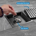 【Premium Material】Agabok shower drain is made of high quality 304 stainless steel material, sturdy, rust resistant and corrosion resistant. The shower drain is more durable due to its brushed nickel surface. 【Anti- clogging Design】- The square shower drain cover with grid design enhances water flow and also prevents hair and larger objects from entering the sewer. The recessed design provides a seamless look for your shower flooring. 【Easy to Clean】- To clean the shower drain, simply use the lifting hook to easily remove the drain cover, removing any debris and hair within minutes. The strainer collects hair and debris to protect the pipe from clogging. 【Shower Drain Size】- 5.9" length, 5.9" width, 2" central outlet. 20-25 L/min high water flow capability, solving ponding problem effectively. The shower drain can be used in a wide range of areas such as bathrooms, kitchens, basements, etc. 【Package】- This shower drain kit includes: shower drain body, drain base, hair strainer, threaded collar and lifting hook. Product Description Why choose us? With professional production lines and cutting- technology, Agabok is committed to bringing the most unique, elegant, fashionable and high-quality bathroom products to every customer and family. We also focus on providing our customers with the best quality products and services to bring happiness to their lives. Agabok 6 inch shower floor drain Made of high quality material, Agabok shower floor drain prevents corrosion, scratches and rust for long-lasting durability. High flow capability solves ponding problem effectively for bathroom. Specification: Material: Stainless Steel 304 Surface Treatment: Brushed Finish Color: Matte Black Dimension: 5.9" length, 5.9" width, 2" central outlet Package Include: Shower Drain Cover x1 Stainless Steel Shower Drain Body x1 Threaded Collar x1 Shower Drain Base x1 Hair Strainer x1 Lifting Hook x1 Stylish Appearance with Practical Design The matte black appearance of the shower drain is combined with a functional design to match a variety of stylish bathrooms. Made of Premium Material for Durable Agabok shower drain is made of premium 304 stainless steel for durable, which is against rust and corrosion. Multi-layer protection and PVD coating of the floor drain also enhances scratch resistance and corrosion resistance. Quick Drainage The grid cover of the shower drain enhances the drainage capacity and effectively and quickly removes water from the shower room. Easy to Clean The cover plate is removable, and you to use a lifting hook to remove the grate cover so that it is easy to clean the drain. 2" Central Outlet With 2" central outlet for a large flow rate of 25l/min, this floor drain avoids ponding problem of bathroom. Accessories The floor drain fittings are complete to ensure the connection between the drain pipe and the ABS flange, with good sealing. Add to Cart Add to Cart Add to Cart Add to Cart Price $28.95 $ 28 . 95 $25.95 $ 25 . 95 $34.95 $ 34 . 95 $31.95 $ 31 . 95 Size 6 inch 6 inch 6 inch 6 inch Material 304 Stainless Steel 304 Stainless Steel 304 Stainless Steel 304 Stainless Steel Color Black Silver Black Silver Whether include shower drain base ✓ ✓ ✓ ✓