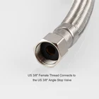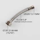 This 3/8-Inch female compression by 7/8-Inch stainless steel nut connects your toilet tank to the wall water supply. Product Description Material: Stainless Steel Hose Nut Material: Metal Hose Lenght: 6 Inch (15 cm) Nut Diameter G 7/8" Female Thread ID=21.68 mm US 3/8" Female Thread ID=13.11 mm G 7/8" connects to the toilet tank US 3/8" connects to the angle stop valve How to Install 1. Turn off the water supply Turn Off the water supply of toilet. Flush the toilet to drain water. If there is leak tighten the appropriate nut. 2. Remove old connector make sure you have correct length Remove old connector hose and measure the length from toilet/sink to pipe. 3. Install toilet pipe Screw the connector hose to 3/8" angle stop valve and 7/8" toilet fill valve, use a wrench to tighten. Stainless Steel Supply Line: Stainless steel braided construction for long lasting durability and burst proof Perfect Seal: Metal joint with rubber washers inside for better seal and no water leakage than plastic feeds Toilet Supply Line 7/8 x 3/8: Metric BSP 7/8" (G) female to US 3/8" female braided hose, this piece makes changing an old or leaking feed line very easy Easy to Install: It has a hexagonal section in both and increased bearing surface when adjusting the fitting with a wrench Flexible for Tight Spaces: 15 cm length will reach your application, make sure to measure your distance from toilet to valve