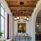 6 Lights Industrial Wooden Pendant Light Rudder Antique Hanging Lamp Chandelier The quality of the old wood is good, the wood is hard, the pressure is high, it is not easy to deform and it is not easy to fade. High-gloss glass shade industrial vintage style 6-light chandelier is perfect for entryways and restaurant 6-Lights Farmhouse Pendant Chandelier Wooden -Light Information *Category: Chandeliers *Usage: Indoor Lighting,Hallway *Shade Shape: Lantern -Dimension *Fixture Length:28" (70 cm) *Fixture Height:43" (110 cm) *Chain/Cord Length:24" (60cm) *Chain/cord Adjustable Or Not: Chain/Cord Adjustable -Bulb Information *Bulb Type: LED/Incandescent/Fluorescent *Bulb Base:E26 *Bulb Number: 6 *Bulb Included Or Not: Bulb Not Included *Wattage Per Bulb: Max 60W. Application : Can be used on different occasions, eg. In the study / living room / dining room / restaurant / cafe / studio / reading room / library / bar / loft / corridor / basement / clothing store. Very creative, individual and stylish. You can choose where it is installed according to your actual needs