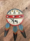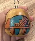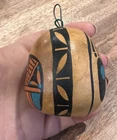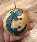 House of Hatten Native American Ornaments Lot Elk Vintage 1991 Gourd Folk Art. Lot of 6 ornaments. Includes gourd lizard, shaker gourd bear and bear tracks, Kokopelli, rabbit, metal elk with hanging feathers, rectangular elk with “wood” frame. I believe the two small white ones are possibly porcelain or something similar. Wood frame one is some type of resin. All hand painted. 5 of the 6 are signed.