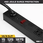 Safeguard your electronics with this heavy duty surge protector power strip with 9 foot long extension cord. 6 outlets in 1 let you power and protect multiple devices simultaneously. 450 joule surge protection keeps your electrical devices safe even in the event of an unexpected power surge. Metal housing and a strong, durable design ensure this surge suppressor will last for years. ETL listed. Veteran owned. 6 Outlets, 9 Foot Cord, 450 Joule Protection, 15 Amps, 125 Volts, 1875 Watts. SAFEGUARD YOUR ELECTRONICS with this heavy duty surge protector power strip with 9 foot long extension cord. 6 OUTLETS IN 1 let you power and protect multiple devices simultaneously. 450 JOULE SURGE PROTECTION keeps your electrical devices safe even in the event of an unexpected power surge. BUILT TO LAST - Metal housing and a strong, durable design ensure this surge suppressor will last for years. ETL LISTED, VETERAN OWNED. 14 gaueg/14 awg, 6 Outlets, 9 Foot Cord, 450 Joule Protection, 15 Amps, 125 Volts, 1875 Watts. 100% SATISFACTION GUARANTEED: is a US veteran-owned business founded by a U.S. Army veteran who stands behind his products 100%. If anything goes wrong with your extension cord outdoor cable, we will replace it with a new item.