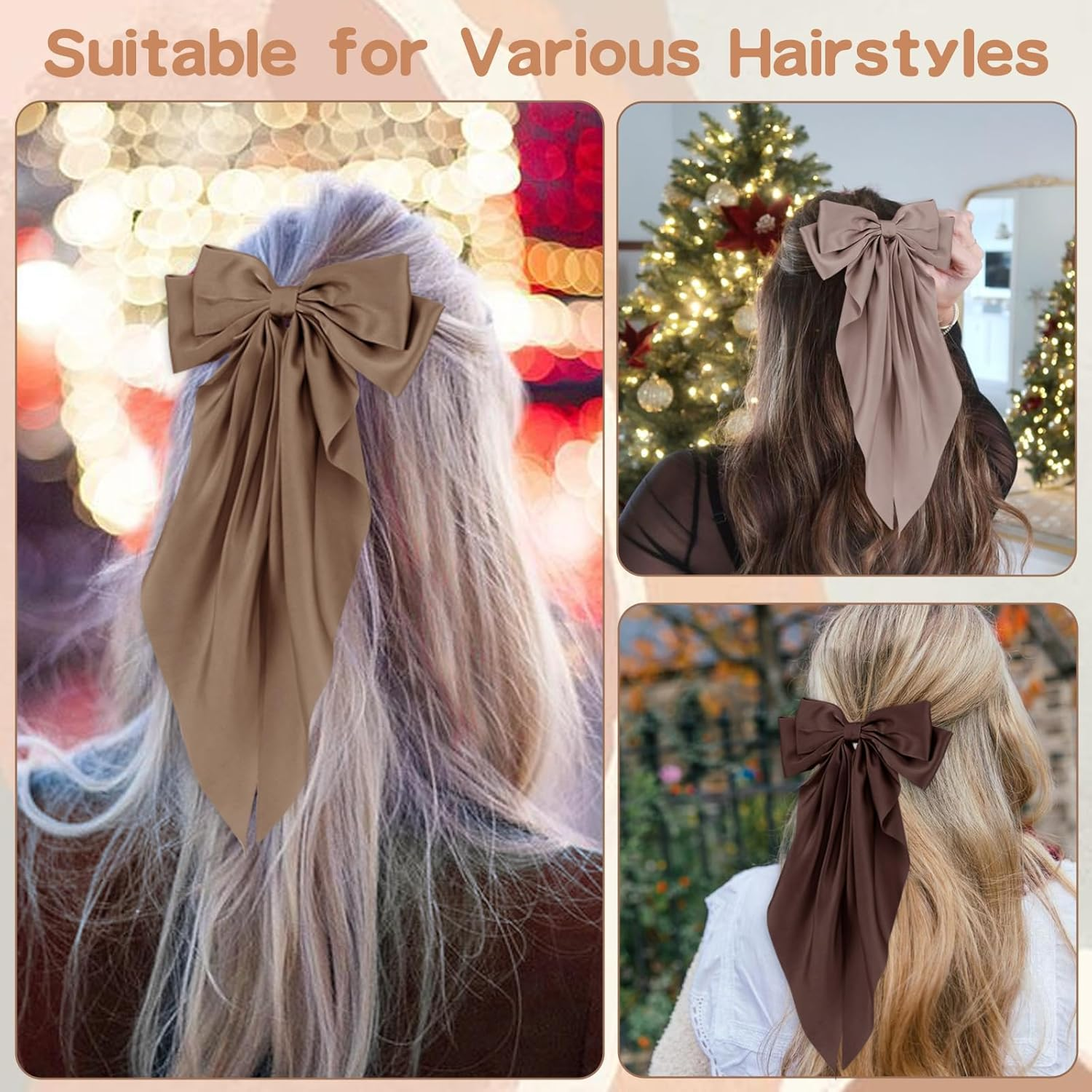 Store New Arrivals Add to Favorite View Feedback Contact Fast deliveries to the customer's home Quality customer service John Make the customers happy! 6 PCS Hair Bows for Women, Big Bow Hair Clips for Girls, Silky Satin Hair Bows Clips Oversized Long Tail, Large Hair Barrettes Cute Aesthetic Hair Accessories, Metal Bow Hair Clips Neutral Color Description ELEGANT DESIGN: Our hair bows are a perfect example of sophisticated elegance. Featuring neutral colors, 6 packs, you can choose your favorite color to wear according to your needs, they are easy to match with your different dressing styles and won't look out of place. Wearing our bow hair clips makes you stand out and exude charm! SOFT MATERIAL: These big hair bows clips are carefully crafted from satin material and metal clips, which is silky soft and very textured to touch. Wearing them will not only add to your elegance and charm and make your hair look fuller and fluffier, but you will also feel so comfortable while wearing them that you can barely feel the bow hair clips! LARGE SIZE: 14.96*7.88 inches large hair bows clips. Perfect for adorning all kinds of hairstyles, short hair, long hair, fine hair, thick hair, straight hair, curly hair and so on. These hair bows are very cute, they can be perfectly fixed in your hair and won't come off when you wear them all day, you don't need to worry about your hairstyle getting messed up at all! IDEAL GIFT: Delicate bow hair clips are the hottest gift for women and girls. Sweet gifts for daughters, wives, mothers and girlfriends during birthday parties, weddings, anniversaries, baby showers, Mother's Day, Thanksgiving, Christmas, Valentine's Day and other festivals, they will surely be happy to receive such beautiful hair clips. WIDE OCCASION: Bow hair clips can be used for various occasions, such as wedding, camping, beach, party, school ceremony, traveling and daily wear. It can easily create the hairstyle you want. It can also be used as a daily decoration, clip it to your calendar or bag to make your every day wonderful! Product description Our big hair bow comes with a long ribbon, when you wear it, the breeze blowing through the long ribbon, make you more beautiful and charming! Big bow hair clips are made of metal clips and satin material, duckbill clips are sturdy, polyester bands are soft & smooth, feel comfortable. Hair clips are perfect for different hairstyles, whether you have long or short, curly or straight hair, it is a good helper for you to create your hairstyle. Our delicate hair bow clips are the hottest gift for women and girls. Sweet gifts for daughters, wives, mothers and girlfriends. Style French Color Brown color Embellishment Bow Age Range (Description) Adult, Youth, Kids Package Dimensions 6.81 x 6.57 x 2.32 inches; 8.11 ounces ABOUT US We offer the best prices around on high quality products. Our E-store includes media such as books, movies, music and games while offering electronics, toys, sporting apparel, clothing, tools, general home, garden items and more. SHIPPING We are always working hard to ensure your package arrives as soon as possible. Please understand that some factors like weather, high postal traffic, and the performance of shipping companies are outside of our control. We offer free shipping to the lower 48 states and ship within 2 business days of payment, usually sooner. We do not accept P.O. Boxes. Please provide a physical address. For shipping outside of the continental USA, we only use eBay's Global Shipping Program. The item is shipped to KY and then sent to the rest of the world. International customers are responsible for all duties and taxes. Continue to 'check out' to calculate costs for shipping the item to your country. Messages regarding eBay's Global Shipping Program MUST be directed at eBay EXCLUSIVELY. RETURNS We offer a 30-Day Return Policy on items in which you are not completely satisfied with. You have the option of a full-refund or an exchange of the item. No returns are available on items shipped outside of the USA PAYMENT We accept PayPal. CONTACT US This page content is yet to come Please ad us to your favorite seller and visit again later Thank You CUSTOMER SATISFACTION We try our very best to make sure every customer is completely satisfied. If there's a problem, message us! We're happy to help. WE ACCEPT