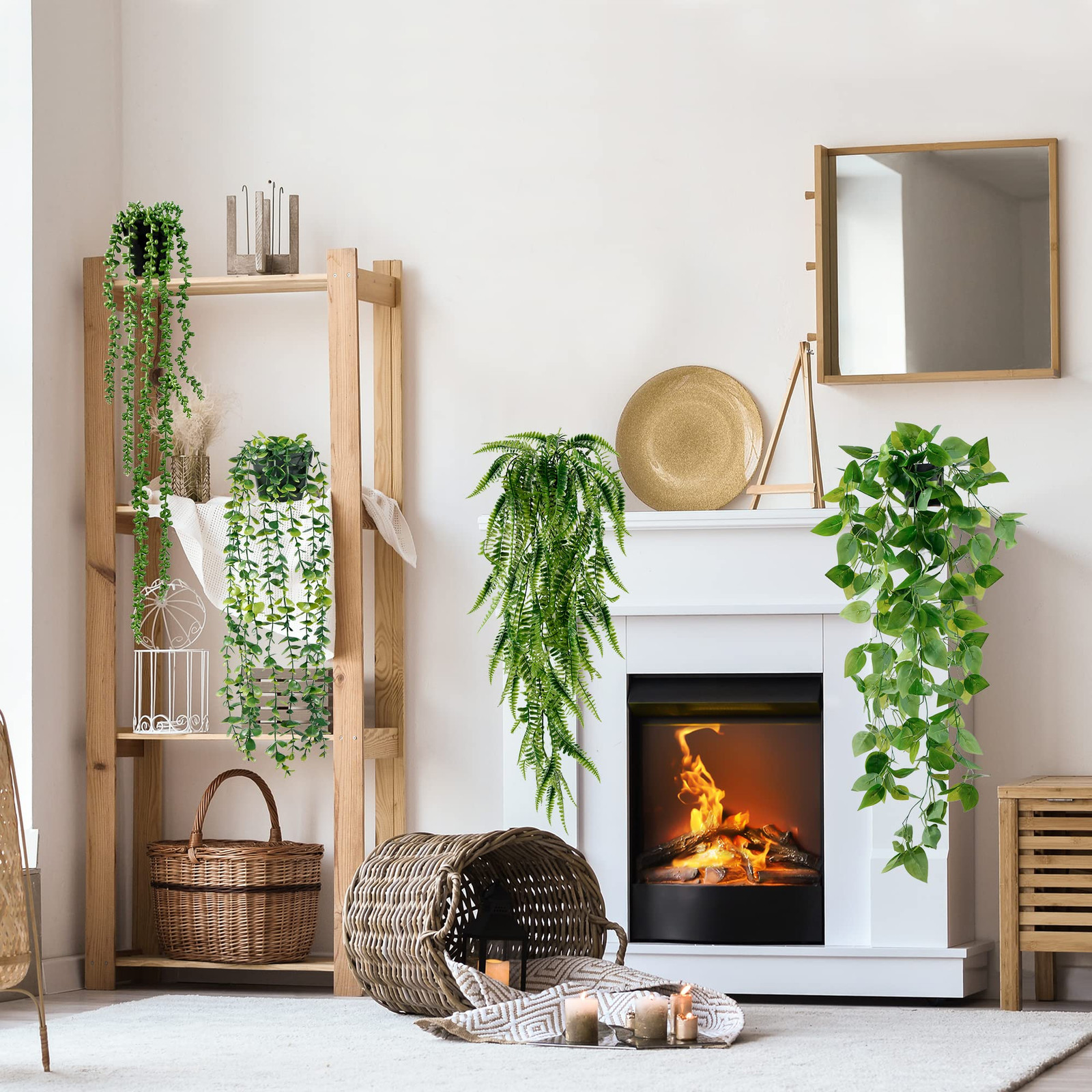 These fake hanging plants are a game-changer! They look so real—lush, vibrant, and perfectly detailed—that guests might mistake them for the real thing. No watering, no sunlight needed, just instant greenery to freshen up any room. The different lengths add great dimension, and the plastic material holds up well. Perfect for shelves, bathrooms, or above windows where real plants struggle. Zero maintenance, all the beauty—absolutely worth it!