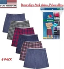 6 Pack Fruit of the Loom Men's Tag-Free Boxer Underwear Shorts Pattern Woven NOTE: WE don't send item to Stock address (address of other shipping company for send item to international buyer) and PO box address. All order use Stock address and PO box address will be cancel. Please don't make order. Thanks ! Fruit of the Loom men's tartan boxers are the perfect addition for going to work, school, or just relaxing on the weekend - this boxer covers it all! The cotton blend material gives these boxers a soft feel and the relaxed design allows for easy freedom of movement with an open fly in the front. Our comfortable elastic plush backed waistband doesn't bind and stretches with you for all day long comfort. The tag-free soft waistband allows for all day comfort while not leaving marks on the skin. Fruit of the Loom Men's Assorted Tartan Boxers, 6 Pack: 6 pack Tartan boxers Legs don't bunch or bind Relaxed fit Fly front Wicks moisture Colors may vary Tag-free 55% Cotton, 45% Polyester