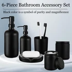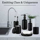 Our exquisite matte black bathroom accessories set includes 1 x Glass Toothbrush Holder, 1 x Cotton Swab Holder, 1 x Cotton Ball Holder, 1 x Soap Dish, 2 x Glass Soap Dispenser 【Spruce Up Your Bathroom to A New Level】Let these matte black bathroom accessories set brighten your bathroom nicely! This black bathroom set is perfect for every bathroom theme no matter modern, farmhouse, luxury, boho, rustic, and western, you name it! You would get 1 * Cotton Swab Holder, 1 * Cotton Ball Holder, 1 * Soap Dish, 2 * Glass Soap Dispenser 【Combine elegance and tidiness into one】matte black bathroom accessories perfectly combine stylish design with practicality, the efficient design allows you to keep all your Q-tips, cotton balls, soap dispenser, and toothbrush organized and conveniently at your fingertips, upgrades your space and ensures your bathroom countertop looks tidy rather than messy 【High-quality glass】We take pride in producing the highest quality bathroom accessories on the market. Unlike other fragile ceramic and low-quality plastic bathroom fittings, our matt black bathroom accessories are meticulously crafted from premium glass material with a thickened base, making them strong enough for long-term use in a humid bathroom environment 【Minimalist and high-end】If you love enjoying life, this black bathroom accessories will perfectly meet all your daily needs, keeping your bathroom looking tidy and beautiful 【Ideal for Present】Imagine enjoying spa-like amenities in a luxurious bathroom. modern bathroom accessories make a lavish gift for new homeowners, weddings, and female hosts, as well as for bathroom decor during family gatherings, Thanksgiving, birthdays, Christmas, and Mother's Day