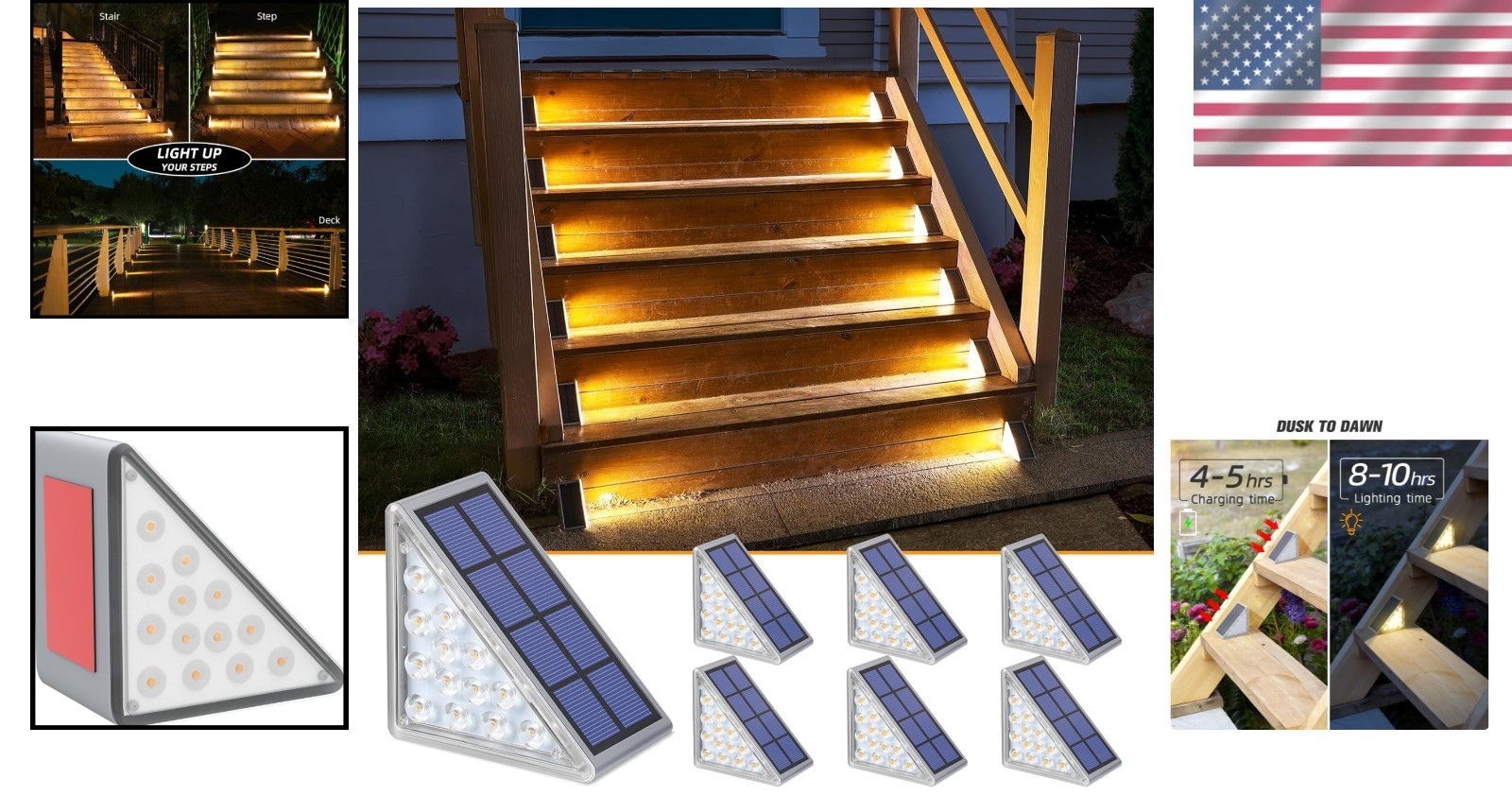 These solar step lights are a game-changer for outdoor lighting! The sleek triangular design adds a modern touch while providing bright, reliable illumination. Super easy to install—no wiring needed—and they charge quickly in sunlight. The waterproof build holds up great in any weather. Perfect for stairs, pathways, or garden decor. Love how they automatically turn on at dusk! Highly recommend for both style and function.