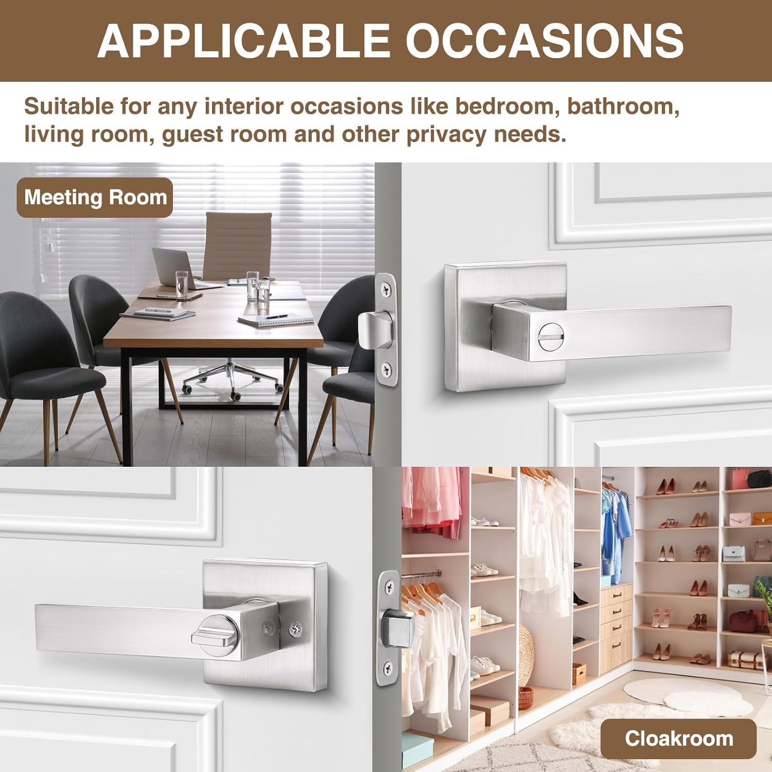 Product description Easy to Install The package is complete with all the installation accessories, you just need a screwdriver to complete the installation instantly. Premium Solid Lock Cylinder Thickened zinc alloy latch can adjust the length: 60mm(2-3/8") or 70mm (2-3/4"); and fit doors of 35 to 45 mm(1.38" to 1.78" doors)thickness. Suitable for all standard doors. Fit for Left / Right Open Doors Our brushed nickel privacy door levers can be used for left handed doors and right handed doors. Up and Down 45° The handle is rotated up or down 45° and the twisting process is very silky smooth, there is no stuck phenomenon. Door handles with lock twist is almost 0 noise. Previous page Next page Hasmikit Door Handles in Various Styles Privacy Door Handles Add to Cart Matte Black Door Handles Buying Options Privacy Door Levers Add to Cart Matte Black Door Levers Add to Cart Customer Reviews 4.7 out of 5 stars 715 4.7 out of 5 stars 715 4.7 out of 5 stars 599 4.7 out of 5 stars 599 Price $139.99 $ 139 . 99 $104.99 $ 104 . 99 $89.99 $ 89 . 99 $89.99 $ 89 . 99 Pack 6/10 2/5/6/8/10 5/6/10 5/6/10 Color Satin Nickel Matte Black Satin Nickel Matte Black Function Privacy-Keyless Privacy-Keyless Privacy-Keyless Privacy-Keyless Shape Square Lever Square Lever Wave Lever Wave Lever Applications Bedroom/Bathroon/Guest Room Bedroom/Bathroon/Guest Room Bedroom/Bathroon/Guest Room Bedroom/Bathroon/Guest Room