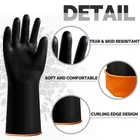 Features: Easy to clean: These reusable cleaning gloves are smooth on surface, which are easy for you to clean, just rinse with water, then air dry for next use, simple and convenient. Wide uses: The thick rubber gloves are suitable for washing dishes, pool cleaning, furniture renovation, yard working, car washing, home cleaning, and so on. They are also nice and practical gifts for family members, colleagues, friends and neighbors. Specifications: Material: latex Color: black Size: 14 x 4.5 inches Package includes: 6 Pairs of heavy duty latex gloves Notes: Manual measurement, please allow slight errors on size. The color may exist slight difference due to different screen displays. Ample Quantity: the package includes 6 pairs of resistant gloves, which are resistant to acid, oil and alkali, keeping your hands from injuries and keeping hands dry and clean; Sufficient quantity is enough to satisfy your daily use and needs Proper Size: these reusable rubber gloves are measured about 14 x 4.5 inches, a suitable size to fit most hands, adopting with rolled edge design, so that the gloves can be fixed in place and not easy to slide, providing much convenience for you when working Reliable Quality: these heavy duty cleaning gloves are made of quality latex material, which is resistance and tear resistance, waterproof and reusable, elastic and tough, skin friendly and easy to put on and take off, and there will be no discomfort after wearing gloves for a long time Practical Functions: these heavy duty dishwashing gloves feature with nice acid base barrier properties to protect your hands and forearms from dangerous liquids or other items, ideal thickness for good safety protection, and smooth surface offering you comfortable tactile and flexible grip Wide Applications: these rubber gloves heavy duty can be applied for car washing, home cleaning, machinery maintenance, yard work, gardening, agriculture, industry, construction, etc., bringing you a wonderful wearing and using experience