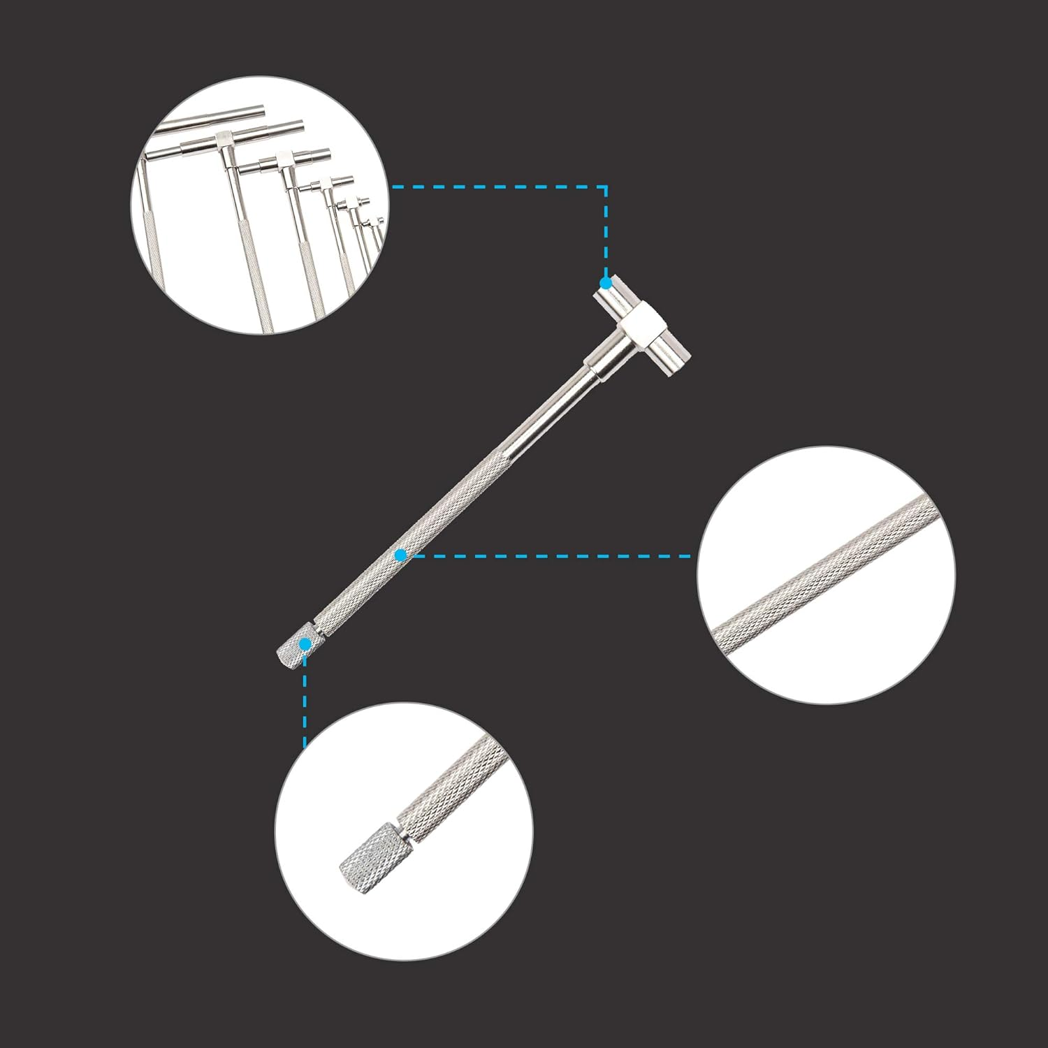 6 Pc Telescoping Gage Set, 5/16" - 6" Range, T-Bore Hole Gauges W/Pouch, High Precision Telescopic Bore Gauge T-Gage Set (5/16" to 6") 【Range】5/16" - 6" (8mm to 150mm), Stainless Steel Construction. 【Using】This bore gauge expands in a hole to be measured , locks in place and then removed to determine final hole size using a micrometer or calipers. It is suitable for measuring the inner diameter of holes, such as the inside of cylinders and bores of engines. 【Package】Includes 6 sets, with vinyl case 【Fine Workmanship】The contact point of this machinist tool is hardened tool steel and is fine ground within the final measuring radius 【Smooth and constant spring tension】 The spring is equipped with a knurled locking knob and a knurled fixing area. Product description Range: 5/16" - 6" (8mm to 150mm) Spring with locking knurled spiral Constant spring tension makes the hand feel even The contact point is hardened tool steel and finely ground within the final measuring radius Get the exact size of holes, slots, holes or grooves Rigid handle and double-action design (self-centering), which can quickly check internal measurement results with vinyl case 6 pc set includes: 1 gage: 5/16 - 1/2" range x 4.20" overall 1 gage: 1/2 - 3/4" range x 4.40" overall 1 gage: 3/4 - 1-1/4" range x 4.40" overall 1 gage: 1-1/4 - 2-1/8" range x 5.85" overall 1 gage: 2-1/8 - 3-1/2" range x 5.85" overall 1 gage: 3-1/2 - 6" range x 5.85" overall Squeeze the probe and place the object to be measured Rotate once to make sure there is no tilt After the measurement is correct tighten the locking device clockwise Measure hole data with micrometer or caliper Size T-Gauges 5/16" to 6" Shipping Fast shipping is very important for us. Our standard US shipping service is FREE. Your order will be shipped within 2-3 business days upon full payment received. Your order will be delivered within 2-3 business days after the handling time. We only ship to the confirmed PayPal address. We reserve the right to cancel any order for any reason at any time. We are not responsible for undeliverable addresses. Returns and payment We offer a 30 days return policy from checkout winning date. We allow only PayPal as payment method FeedBack Your feedback very important to us, after you get your package and you are satisfied with our service please leave us positive feedback If you have any problem with your order / any questions please before leave any type of feedback For any questions, using eBay contact system Please visit our eBay store to check out other items for sale! Thank you for shopping at our store.