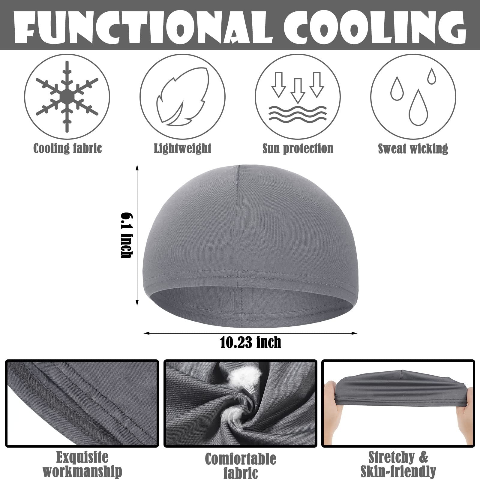 6 Pcs Men Skull Cap Helmet Liner Cooling Sweat Wicking Beanie Head Wrap What You Get: you will get 6 pieces of cooling skull caps for men and women; They will be good helmet liners under hard hats, motorcycle helmets and so on, nice for running, cycling beanie caps, the sufficient quantity that can satisfy your needs of wearing, exchanging, washing, even sharing with your friends Cooling Material: helmet liners are made of milk silk that has a cooling feel, nice elasticity, breathable and sweat absorbent features; The lightweight fabric also provides a comfortable wearing experience in hot weather Suitable for Under Helmets and Hard Hats: say goodbye to smell, sweat and itchy sensations; Our fabric blend is so stretchy that you'll have to worry no more about how comfortable you'll feel wearing it, and a breathable skull cap helmet liner both protects your skin and keeps sweat away from it Where to Wear Them: these skull hats can be worn by men and women for a bunch of different activities indoors or outdoors, and they can be worn as helmet lines under helmets and hard hats when you are mountain biking; And they are one size to fit most people and are suitable for a variety of activities: walking, hiking, jogging, running, workout, cross training, cycling, gym, tennis, dancing, basketball or whatever you could think of Forgot Sweat: our cooling skull cap sweat wicking, lightweight, stretchy and breathable skull cap absorbs sweat and keeps it away from your eyes and forehead, quick cooling and drying, feels like second skin under your helmet Features: Shareable package: This cycling helmet liner is designed with 6 different fluorescent colors, 1 piece for each color. Rich in quantity and style, you can share them with your family members, classmates, neighbors, close friends, relatives and other important people. They will be happy to receive these practical things. Practical and convenient: Made of quality milk silk, the bike skull caps for men will offer a soft and lightweight wearing experience for you, and you can wear them without any discomfort throughout the day, suitable for a variety of activities, like running, walking for a dog, jogging, cycling, mountinaing, etc. Specifications: Material: milk silk Color: as the picture shows Size: one size Package includes: 6 x Cooling skull caps Notes: Manual measurement, please allow slight errors on size. The color may exist slight difference due to different screen displays. Shipping We offer FREE shipping on all orders! We ship within Three business days of payment, usually sooner. We use a selection of shipping services such as UPS, FedEx, USPS etc. We only ship to the lower 48 states, no APO/FPO addresses or PO Boxes allowed. Local pickups and combined shipping options are not provided at this time. Return You can return a product for up to 30 days from the date you purchased it. Any product you return must be in the same condition you received it and in the original packaging. Please keep the receipt. Payment We accept payment by any of the following methods: PayPal Please pay as soon as possible after winning an auction, as that will allow us to post your item to you sooner! Feedback Customer satisfaction is very important to us. If you have any problem with your order, please contact us and we will do our best to make you satisfied. Contact Us If you have any queries, please contact us via ebay. We usually respond within 24 hours on weekdays. Please visit our eBay store to check out other items for sale! Thank you for shopping at our store.