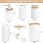 6 Pcs White Bathroom Accessories, Bamboo Includes Product Details Number of Pieces: 6 Finish Type: Abs,Bamboo,Resin Manufacturer: DESIYUE Package Dimensions: 10.87 x 7.99 x 7.87 inches Item Weight: 2.29 pounds Country of Origin: China Item model number: 0 Fabric Type: Plastic,bamboo Finish types: Abs,Bamboo,Resin Batteries required: No Material: Bamboo Color: White Brand: DESIYUE Style: 6pcs-White -Bamboo Included Components: Toiletbrush Plastic,bamboo Bathroom Accessories Sets:6 pieces white bathroom accessories includes:1 Soap Dispenser, 1 Toothbrush Holder, 1 Toothbrush Cup, 1 Soap Dish,1 Toilet Brush Holder,1 Trash Can.The bathroom essential organizer set helps you to properly decorate your restroom and save valuable space. Durable and High- Quality:This 6-Piece Bathroom Accessory Set is made of durable ABS and high-quality wood, and a coat of heavy resin. Our high quality bathroom accessories light and durable, keeping their look just as elegant and new over time. Fashion Storage:Our high quality bathroom accessories light and durable, keeping their look just as elegant and new over timeDecorate your bathroom, keep your bathroom clean, tidy and orderly.The overall color scheme makes your bathroom look cleaner. Easy to Clean and Assemble:Smooth finish makes it easy to wipe down or hand wash residue.It is extremely simple to assemble our bathroom set and because of it’s sleek, cleaning it is easy and quick. Stylish Design:Elegant design makes the bathroom bathroom accessories ideal for modern bathrooms, it's an attractive decor and bring extra elegance to your bathroom. It is suitable for home, bathroom, dormitory, hotel, apartment, washing room, basement, RV and etc. Also perfect for giving as housewarming, Mother's Day or wedding gift.