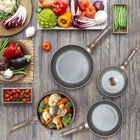 A Maximum Comfort: The pot and pan set is lightweight aluminum. It has a much more protective layer than metal pots and pans, corrosion and scratch-resistant. Bakelite's ergonomic handle can stay cool to prevent heat. Healthy Coating: Our pots and pans set nonstick with durable ceramic-tech coating, which allows you to use them without butter or olive oil to cook your favorite foods without worrying about your children's . Our home kitchen pots set is non-and free from PTFE & PFOA. Dishwasher safe. With All Heat Sources: Our cooking set is the solution for all kitchen cooking needs and can be used on all stoves, gas, , halogen, and induction. The bottom of the pot and pans use induction technology, which allows equal heat transfer throughout the pot for proper cooking. Complete Kitchen Set: The kitchen pots and pans set includes 1pc saucepot 1.5 quart, 1pc casserole pan 2.5 quart, 1pc frypan 8", 1pc frying pan 9.5", and 2 high-tempered see-through glass lids that are precisely the nonstick cookware sets that you need for your day-to-day cooking. Customer Support: pot sets for cooking nonstick are covered under a 1-year for our kitchen cookware sets or kitchen sets.