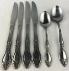 Wm A Rogers Oneida Flatware Lot includes: 4 dinner knives, 1 teaspoon and 1 tablespoons. Shows signs of light use and may need additional cleaning. Little spotting in places but no dishwasher or disposal damage. Overall very nice condition. Please see pictures for details as this is part of my description. Feel free to ask if you have any questions.