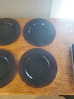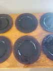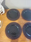 The product is a set of 6 Bormioli Rocco Studio Palatina dessert plates in a vibrant purple Amethyst glass. Each plate has a diameter of 8 inches and features a hammered texture for added visual interest. The set includes both dessert and salad plates, making it perfect for serving a variety of dishes in style. Shelf W
