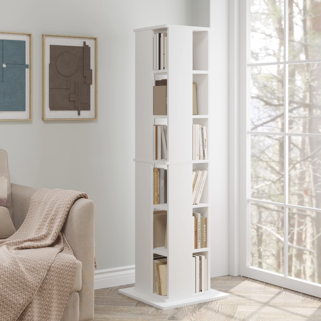 6 Tiers Corner Spinning Bookcase Organizer 360° Rotating Bookshelf Tower White for Home Office Specifications: Color: white Material: MDF Overall Dimension: 16.93" X 16.93" X 56.1" Package Includes: 1pc bookcase and all accessories for installation Features: ORGANIZED AND BEAUTIFUL - Make your books neat and organized with this rotating bookshelf tower lazy susan; The space saving design can hold up many books in a compact space. 4-TIER BOOKSHELF DISPLAY - Keep your home clean and keep track of your books better with this spinning bookcase tower; Makes every book visible and save so much of your room book storage space. MORE BOOKS IN LESS SPACE - With the spinning design, this book shelf organizer can hold lots of books in the small area; The modern look can fit in bedrooms, living rooms, children's rooms, study rooms and playroom. 【Easy to assemble】We provide all hardware and accessories for this bookshelf, it comes with simple, easy-to-follow instructions, it can be easily assembled without additional tools, I believe you can have it right away. Tips: You may receive 2 or more flat packages for some products in our shop, please track all the tracking numbers we update to you. Notes: It takes some time to install the furniture, please don't be worried about the installation, and please pay attention to your safety while installing. We will ship from the US warehouse, you need to wait longer time than usual during the current special epidemic situation, please track the package delivery information at any time. If there is no stock for the accessories which are necessary for installation in the US warehouse, we will arrange the replacements from our warehouse in China directly, but it will take longer time for your patient waiting. Please do not be hesitate to contact us for any questions you have before or after purchasing, we are always online and will try our best to help you to solve it.