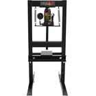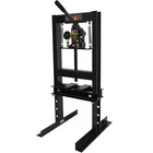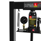 Product Features Wide Application: The shop press with a pressure gauge, you can always see the changes in pressure. With a range of 2.2" to 9.4", The hydraulic shop press can be used for bending or straightening metal. And adjusting the height is a breeze thanks to the convenient pin system. Two movable stamping plates are perfect for securing small parts during use. 6 ton Capacity: The capacity of the equipped bottle jack is 6 Ton. It can help straightening or bending metal more easily. This press can be used for metalworking tasks like bending, straightening, and stamping. Strong and Stable: The H-shaped frame structure provides a sturdy base, and you will not wobble or shake during use. Besides our hydraulic press boasts a robust carbon steel body. High quality precision springs: The spring can slowly and safely bouncing back after pressing down operation; Piston-ram is treated and polished to resist skiving. The hydraulic shop press can be operated easily by simply pressing or lifting the long handle for the bottle jack. Safe and Convenient: The relief valve kicks in automatically when the pressure exceeds 6T, avoiding any overpressure-related damage to the workbench. There are 4 holes on each side of the hydraulic shop press for height adjustment of the working table. You can adjust the height of the working table based on your needs. Description