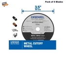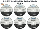 6 - Dremel Ultra Saw Blades 3-1/2" Metal Carbide Cutting Wheels 60 Grit These Dremel Ultra Saw Blades can cut a wide range of ferrous and nonferrous metals, including copper pipe, conduit, coated wire shelving, thin sheet metal, threaded rod, sheet aluminum & more. No need to apply excessive pressure; save effort & reduce fatigue by letting the wheel do the work. Seller: on eBay: Allgoodcosales Dremel Ultra Saw Blades Quantity: 6 Dia.: 3-1/2" Blade Thickness: .049" Grit: 60 RPM: 20000 High performance metal cutting applications Don't apply excessive pressure – the tool does the work Seller on eBay: Allgoodcosales Cuts a wide range of metal materials including: Copper pipe, conduit, coated wire shelving, thin sheet metal, threaded rod, sheet aluminum and more. Technical Specs Item Cutting Wheel Application Metal Cutting Dia. (In.) 3-1/2 Overall Length (In.) 3-1/2 For Use With Dremel Ultra Saw Includes Blade Package Quantity 1 Number of Pieces 1 Function Cuts Ferrous and Non-Ferrous Materials Flap Wheel Width (In.) 3/64 Construction Carbide Max. Cutting Dia. (In.) 3-1/2 We ship to the lower 48 states only. We cannot combine shipping and there is no local pickup. We cannot ship to PO Boxes or APO's. We do not sell used, fake, refurbished, or items shipped from outside the U.S. We use different suppliers across the US to ensure as fast as possible delivery for this Dremel Ultra Saw Blades .