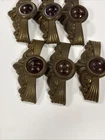 Lot of six brass plated 1930s/ 40s drawer handles - pulls. These have normal wear. I do not see any damage. Please view pictures for description. I will ship after payment five days a week.