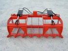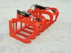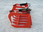 This is a brand new 60" wide dual cylinder grapple designed to fit machines (skid steer's and tractor loaders) with the skid steer quick attachment mounting system. The root grapple is great for moving brush, logs, and many other types of debris. With the wider tine spacing, it allows for dirt to fall through while allowing you to grab the bigger debris. It is a fantastic tool for clearing land, storm cleanup and all types of jobs. The dual grapple design allows for uneven and odd shaped debris or material. Specifications: Made In The United States! Width - 60" Weight - 500 Pounds 2" x 8" Tie Rod Cylinders 27" Opening from Tip of Tong to Tip of Bottom Tine Steel Covers over Hydraulic Cylinders 3/8" Thick Sides, Middles, and Tongs 3" x 3" Square Tubing on Main Frame Teeth are Serrated for Extra Bite Hydraulic Lines are rated for 3,000 PSI Comes with Hydraulic Hoses and 1/2" Standard Flat Face Couplers Powder Coated Orange Paint Universal Skid Steer Quick Tach Mount Plate Please Note: This attachment is designed for tractors with less than 45 horsepower. We recommend our heavier models for larger machines and/or commercial applications.