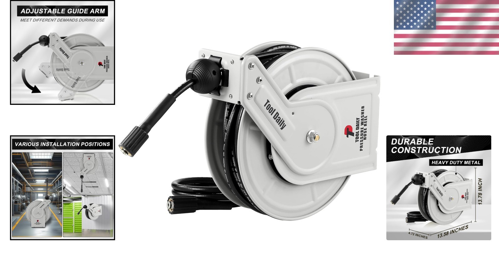 This retractable hose reel is a game-changer! The auto-rewind makes cleanup a breeze, and the heavy-duty steel construction feels solid. No more wrestling with tangled hoses—the smooth rollers keep everything neat, and the stop ball lets you lock the perfect length. Handles high pressure like a champ while staying tangle-free. Super convenient and built to last!