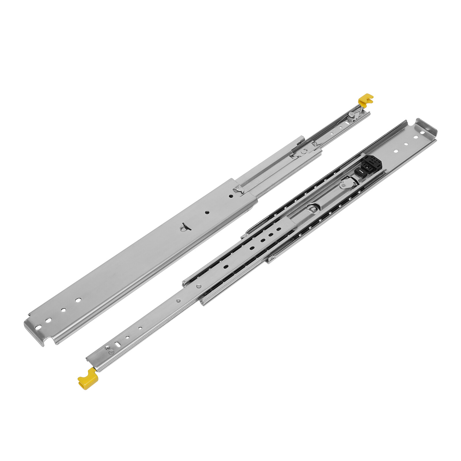 These drawer slides are a game-changer! Super sturdy and smooth, even with heavy loads. The full extension is perfect, and the lock keeps drawers secure. No squeaking or sticking—just solid performance. The steel feels high-quality, and installation was a breeze. Highly recommend for anyone needing reliable, heavy-duty slides!