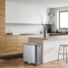 60 Liter / 16 Gallon Rectangular Hands-Free Dual Compartment Recycling Kitchen Step Trash Can with Soft-Close Lid, 2 Plastic Inner Buckets and Hinged Lids, Brushed Stainless Steel Generous Capacity for Waste Management: With a 60-liter (16-gallon) capacity, this rectangular trash can provides ample space for both waste and recycling, making it an ideal solution for busy kitchens and households that generate a significant amount of trash and recyclable materials. Convenient Hands-Free Operation: Designed for hands-free use, this step trash can features a durable pedal mechanism that allows for effortless waste disposal, ensuring a hygienic experience—especially useful when your hands are full or dirty. Gentle Slow-Close Lid: The slow-close lid design prevents sudden slamming noises, providing a quiet and serene environment in your kitchen. This feature enhances user experience by allowing the lid to close smoothly and softly after use. Integrated Odor Control System: This trash can comes with a built-in filter designed to help manage odors, keeping your kitchen smelling fresh. Activated carbon needs to be purchased separately. Easy to Clean and Maintain: The design of this dual compartment trash can makes it simple to keep clean. Its smooth surfaces and removable inner buckets facilitate hassle-free maintenance, allowing you to easily dispose of waste and replace liners to maintain a tidy space.