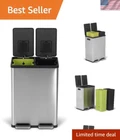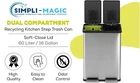 60 Liter / 16 Gallon Rectangular Hands-Free Dual Compartment Recycling Kitchen Step Trash Can with Soft-Close Lid, Brushed Stainless Steel HIGH CAPACITY WASTE AND RECYCLING SOLUTION: Color coded liners in Green (30L) and Black (30L) allow for easy sortation of waste and recycling, without sacrificing waste capacity, and fit standard liners using bag cinch. HANDS-FREE USE: The stainless-steel foot pedal stands up to daily use and removes the need to touch the lid during waste or recycling disposal to keep hands clean. SLOW CLOSE LID: Quiet, controlled lid closure is designed to reduce unwanted noise and ease down LOCK: Extended open lid lock keeps the container open for longer tasks and chores. BUILT IN FILTER FOR ODOR CONTROL. EASY TO MAINTAIN: Finish naturally hides fingerprints, smudges and dirt. 60 Liter / 16 Gallon Rectangular Hands-Free Dual Compartment Recycling Kitchen Step Trash Can with Soft-Close Lid, Brushed Stainless Steel