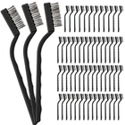 Enough to Share with Others: the package will bring you 60 pieces of wire brushes for cleaning, mainly in black, very useful in your daily life; The sufficient quantity can meet your needs for various situations, and you can also share them with your family or surrounding friends Dependable to Serve You: mainly made of stainless steel, the small wire brush is hard and solid, reliable in quality, not easy to deform, wear, or break; Moreover, its handle is made of plastic, hard and firm enough to use, smooth for you to touch Extensively Assorted Usages: the metal brush for cleaning can help you clean lots of stains, such as oil stains, welding slag, corrosion, and more; You can also use it to clean your windows, doors, floor tiles, in your home, office and more Proper Length for Applying: each metal wire brush measures approx. 6.7 inches in total length, its handle is approx. 13 cm/ 5.12 inches, long enough for you to hold and grasp, small and compact, easy for you to carry around and store Functional and Practical Design: the stainless steel wire brush has a curved handle, which can fit your hand well, and will not fall off easily, comfortable for you to touch and hold, and can bring you lots of convenience Features: Easy to hang: The steel brush for cleaning is designed with a small hole on the end, convenient for you to hang on the wall, which will make your room and house look cleaner and more organized. A novel present: You can send the steel wire brush to your parents, loved ones, neighbors, colleagues, friends, and more, showing your care and love for them in this simple way. Specifications: Material: stainless steel Main color: black Size: approx. 6.7 inches in length Package includes: 60 x Mini stainless steel brushes Notes: Manual measurement, please allow slight errors on size. The color may exist a slight difference due to different screen displays. Pointed items included, please use with care.