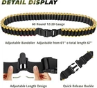 60 Round Adjustable Shotgun Shell Bandolier with Quick Release Buckle, 12/20 Gauge Shotgun Shell Holder Holds 60 Shotgun Shells for Hunting (Black) 【Adjustable Length】: Our shotgun shell bandolier can adjustable from 62" up to 68", adjust it to your suitable length as you need, it comfortably rests on your shoulders. This 12/20 gauge shotgun shell bandolier is an excellent gun accessories for your gun. 【Great Shell Holder】: shotgun bandolier holds 60 shotgun shells for 12 or 20 gauge, and the elastic ammunition loops hold shells in place. Extra large capacity by shotgun shell holder allows you to carry a large amount of ammunition with you. 【Durability Material】: This 12 gauge shell holder boasts a durable, stretchy, nylon construction, and provides snugly fit in the elastic loops for your bullets without worrying about bullets will falling out. Provide you with the best hunting experience. 【Shoulder Friendly】: Lightweight and 1.9” width of shotshells bandolier is extra wider than regular webbing belt, perfectly separate weight stress on the shoulder, less stress but more comfort on your shoulder. 【What You Get】: 1 * 60 Round Black Shotgun Shell Bandolier and our friendly customer service. Shipping We offer FREE shipping on all orders! We ship within Three business days of payment, usually sooner. We use a selection of shipping services such as UPS, FedEx, USPS etc. We only ship to the lower 48 states, no APO/FPO addresses or PO Boxes allowed. Local pickups and combined shipping options are not provided at this time. Return You can return a product for up to 30 days from the date you purchased it. Any product you return must be in the same condition you received it and in the original packaging. Please keep the receipt. Payment We accept payment by any of the following methods: PayPal Please pay as soon as possible after winning an auction, as that will allow us to post your item to you sooner! Feedback Customer satisfaction is very important to us. If you have any problem with your order, please contact us and we will do our best to make you satisfied. Contact Us If you have any queries, please contact us via ebay. We usually respond within 24 hours on weekdays. Please visit our eBay store to check out other items for sale! Thank you for shopping at our store.