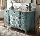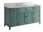 60" Bathroom Cabinets Vanity Sink Unit Rustic Decor Abbeville CF-66323BU-60-1 60" Bathroom Cabinets Vanity Sink Unit Rustic Decor Abbeville CF-66323BU-60-1 Dimensions: 60 x 22 x 34" H The plantation-inspired look of this cottage-style sink cabinet will add casual elegance to any bathroom decor. Shutter-style door with antique blue finish, this bathroom vanity offers a look that will create a relaxing retreat in any home. Fully assembled by manufacturer, sink and countertop pre-installed White marble countertop (one large genuine) White under mount porcelain sink Back panel pre-cut opening for easy plumbing access 3 holes 8-inch widespread- faucets sold separately – -Contact seller to add a faucet 8 fully functional drawers with underneath wood glides Materials: Solid Wood Structure & CARB Ph2 Certified Panels with birch veneering Cabinet Style: Cottage style, distressed blue Optional backsplash available for $95.00 Matching Mirror Optional for $145; Size: 30 x 38”H (no additional freight when shipping with vanity together Backsplashes are optional, however, due to high freight damage occurrences Seller only ship backsplash with a vanity. There is no freight charges if ship together. In the event that the backsplash is received damaged or broken, it will not be replaced only refunded About Our Bathroom Vanities Counter Top : Our vanities feature White Marble countertops, which are cut from a single stone slab in order to emphasize the stone's natural beauty and durability. The top is pre-drilled to accommodate a standard 8" wide faucet. Additionally, all of our tops are sealed to prevent watermarks and common stains. Please Note : While vanity tops are pre-sealed at the manufacturing facility, all natural stone surfaces require resealing from time to time. Due to the unique nature of each stone, resealing may need to be done sooner on some surfaces. Sink : The white porcelain under mount sink is included and pre-attached to the countertop. The sink requires a manual push-down/pop-up style drain, only included if the faucet is purchased from us. Make : Our functional cabinets are built with sturdy birch wood; the side panels and door panels are made of either solid wood, plywood, or veneer wood. Additionally, the back panel of the vanity has a piece of covering with a large opening for easy plumbing access. Finish : This vanity has a multi-layer, 12-step hand-applied finish and has been given proper time to absorb, following a 3-layer hand-applied varnish for increased durability and prevention from warping, peeling, or chipping in elevated humidity levels. By purchasing this item, you agree to the following terms and conditions: Disclaimer The digital images on our website are rendered to be as accurate as possible. However, please be aware that different computer monitors may vary in display, creating a false perception of product color for the customer. Additionally, cabinet finishes may appear darker in different available lighting. Due to the nature of natural stones, it is normal for stone countertops to have variations in color and texture, discolored spots, pores, veins, or other natural imperfections. Therefore, these are NOT considered defective. Please refer to our information on how to care for your granite or marble countertops. Shipping Policy Damages Policy Returns Policy Warranty Policy Backsplash Policy CURBSIDE DELIVERY POLICY All of our shipments are delivered through curbside delivery with a contracted freight carrier. Please refer to this guide as freight deliveries are handled quite differently from package delivery services such as UPS and FedEx. R&L Carrier and SAIA Freight Line service most of our cargo deliveries. Read through the following to learn how to schedule a delivery appointment with the carrier and ensure that you receive your shipment in a timely manner. Our listed shipping rates are for standard curbside delivery services performed by truck lines for ONE unit within the 48 states in the continent. We contract R&L Carrier and SAIA Freight Line to service most of our cargo deliveries. All deliveries are made as curbside deliveries during our freight carriers' normal business hours with a 4-hour window, made as a pre-scheduled appointment. Usual transit times run between 3 - 10 service days. Even though the cargo is fully insured by the shipper (us) for damage during transportation, the buyer may refuse the shipment if the cargo packaging does not appear to be in good condition . Please be sure to provide your correct shipping address; otherwise, you may be responsible for any change of address fee charged by the carrier. Curbside delivery is the standard delivery service provided by most freight companies. Delivery agents will unload your items from the truck, but will not move the items inside your house or business, and will not assist with unpacking, setup, or cleanup. - Shipments are delivered via freight carrier, oftentimes by a 53' semi-truck, which weighs approximately 20 - 40 tons. - Some rural areas, islands, or otherwise inaccessible locations (e.g. steep hills, gravel roads, long driveways, narrow roads, private roads, etc.) may not be deliverable by our contracted carriers. - In some cases, the freight carrier may be able to provide a special arrangement (i.e. hiring a local moving company, renting a smaller truck for final delivery, etc.), however, additional fees will apply. Please feel free to contact us for details before purchasing. SCHEDULING YOUR DELIVERY The freight carrier might or might not contact you 24-48 hours prior to delivery to arrange a delivery time. We recommend that our customers call to schedule the delivery of your shipment at your best convenience. Do not plan to be home for the delivery based only on the tracking system as there may be a delay in arrival to the local terminal. Please call the freight carrier one day prior to your delivery to confirm the appointment. If you miss your scheduled delivery, you can eit