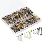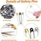 【Great value sets】The package includes 600 Pcs safety pins for all your needs. 3 colors: gold, sliver and black. Each color safety pins come in 200 pcs. Divided into 4 sizes - 19mm(0.75 in), 22mm(0.87 in), 28mm(1.1 in), 38mm(1.49 in). You will be sure to have the right size available, no matter what you need it for. 【Durable Material】The safety pins are made of anti-rust nickel plated steel. They are durable, well manufactured and less prone to bending, rusting and corrosion. Stable and durable safety pins can meet your daily usage needs. 【Easy to Storage and Use】The safety pins are classified and placed in a transparent box. You can pick up the safety pins of various colors and sizes according to your needs in different compartments of the box, without any effort to find them, which is convenient and fast. 【Safety Setting]】The tip of the safety pin is covered when locked, which can protect your fingers from the impact of accidents. Warm tip: This is a sharp product and should be kept away from children. 【Wide Application】Our safety pins comes in a variety of colors and sizes to meet your diverse needs, making them suitable for handmade, clothing, sewing, jewelry making, clothing fixation, DIY crafts, etc. Product Information Product Name: Safety Pin Kit Material: Alloy Size: 19mm, 22mm, 28mm, 38mm Color: Gold, Silver, Black Quantity: 600Pieces Package Includes: 19mm - 70 Each for Silver,Black and Gold 22mm - 50 Each for Silver,Black and Gold 28mm - 40 Each for Silver,Black and Gold 38mm - 40 Each for Silver,Black and Gold Features: The safety pins are made of high quality alloy material, which is sturdy and durable for long-term use. These 600 pcs safety pins come with a convenient storage box, easy to find, carry and use. Different safety pins have 4 different sizes, 3 colors, 600 pieces in total, enough for your daily needs. Suitable for craft projects, jewelry, dressmaking, sewing and more. The safety pins have sharp points, keep them away from children under 6 years old Warm Tips Due to differences between different displays, there may be a slight color difference. If you have any questions about how to use the safety pins for clothes, please feel free to contact us, we will answer your questions as soon as possible.