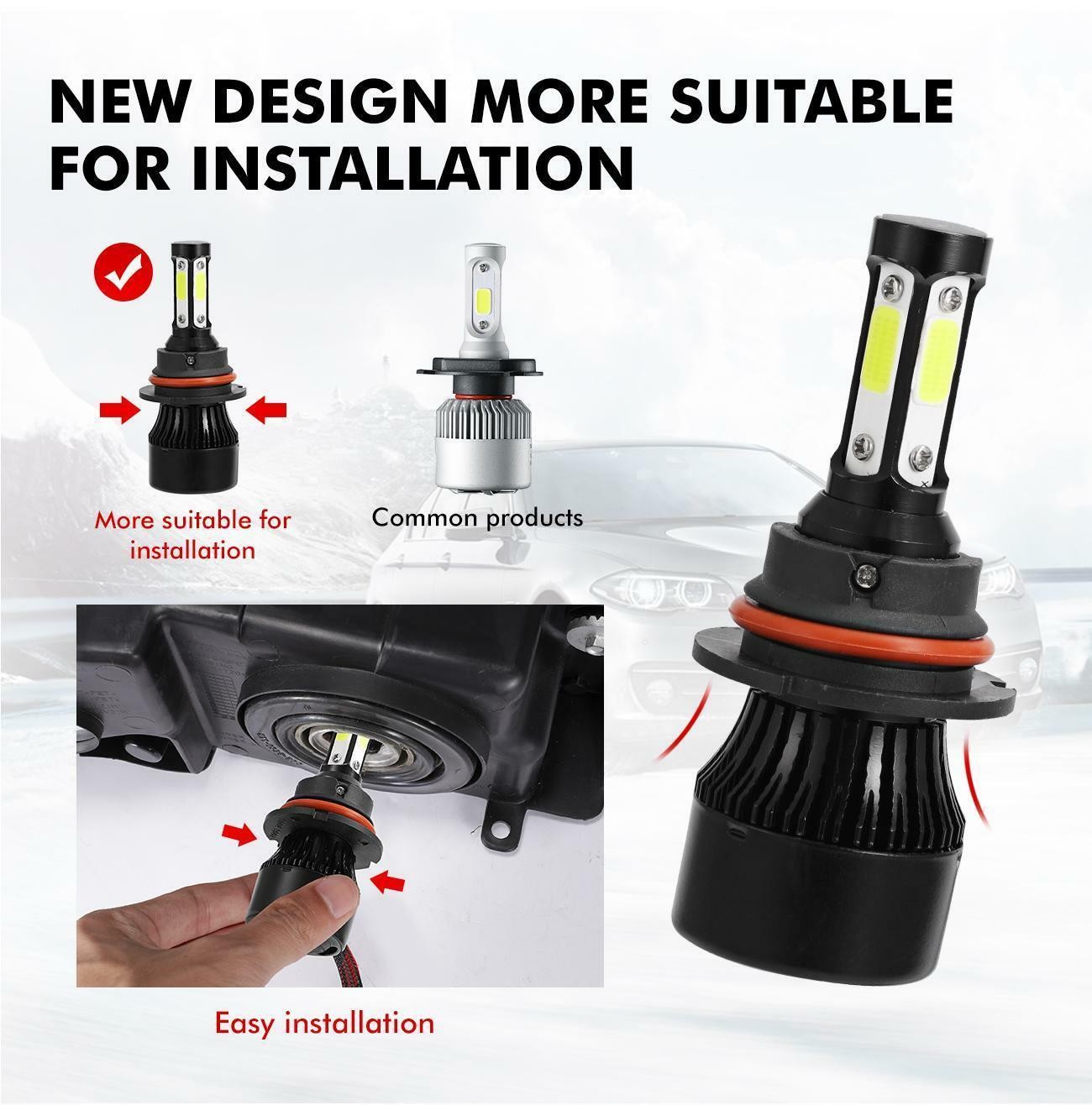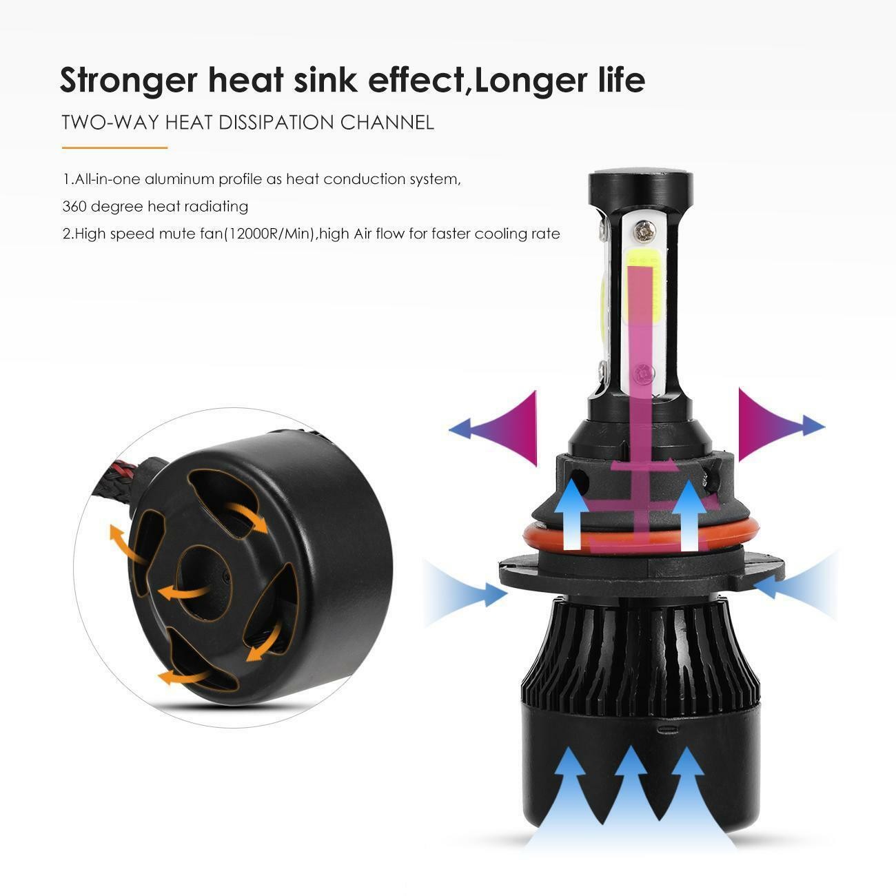 Note: wholesale!!! Products can be wholesale!!! If you have any needs, please send us a message to contact us. Information: a)Compatible List can not show up all Car model. Please check the Correct item size of your vechicle. it will work and fit.Thank you! b)If you are unsure the item fit or not , please do remember send message to tell us your car make, model, year and other information which is helpful to check the item fit or not. For example: 2004 Ford F-150, high/low beam 2015 RAM 1500 with projector-type, high beam 2019 Ford F-150 ,XL Crew Cab Pickup 4-Door 2.7L (2pcs/set)9007 COB Hi-Lo Beam LED headlight conversion kit Latest COB chip(USA) light source,4 luminous faces no blind zone Engineering beam pattern design throw more light on road evenly at appropriate angle without foggy light Xenon white light reflect road paint/signs better to show clearer road situation during night driving 270 degree low beam angle with cut-off line,will not dazzle oncoming traffic All-in-one heat conduction+high speed mute fan system keep the light bulb in appropriate working temperature Built-in constant current CPU, instant full brightness without start-up relay Two-way heat dissipation channel 1.All-in-one aluminum profile as heat conduction system, 360 degree heat radiating 2.High speed mute fan(12000R/Min),high Air flow for faster cooling rate Fog Light: Color:6000K Super White LED Type: LED chip high power Beam Type:360° Beam Angle , No High Or Low Beam Ultra Bright LED, unique and more vivid color Low Power Consumption and Low Temperature Long-lasting Life 50000 hours Easy installation, just plug & play Faster on/off response time and vibration resistant Applications:Fog Driving Lights / Daytime Running Light DRL Interchange Part Number: 880/893/899/884/885/892 Package Included: 2x 9007 LED headlight bulbs 2x 880 LED Fog Light bulbs