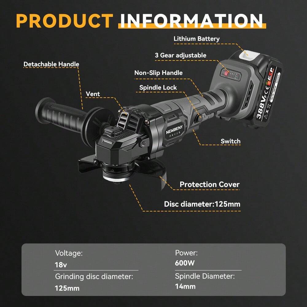 This grinder is a game-changer! The 600W brushless motor delivers smooth, powerful performance, and the 125mm disc handles cutting and polishing like a pro. Lightweight yet sturdy, it’s comfortable for extended use. The M14 thread ensures secure accessory changes, and the spring discount makes it a steal. Highly recommend for DIYers and pros alike!