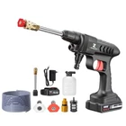 Specification : 100% New: We check every machine with water. it flow out some water is normal Product name: Wireless car washing machine Material: ABS and copper Power Supply:Lithium battery Weight:20000mAh (2.09KG) /30000mAh(2.34KG) Product pressure: 60Bar Drive: Lithium battery wireless drive Speed: 20,000 rpm Maximum flow: 10L/min Jet stroke: 6-10 meters Color classification: 10-section floor-standing wireless car washer, 15-section floor-standing wireless car washer Water pipe length: 5 meters Car washing equipment type: household car washing machine Water source type: faucet self-priming Scope of application: car washing, watering flowers, watering vegetables, spraying, garden cleaning, etc. Features : 1. Special material waterproof, water and electricity isolation is safer 2. Self-priming/faucet 2 water inlet methods, more convenient to take water 3. 3 Water types adjustable 4.With temperature protection function, automatic shutdown of over temperature and overload, eliminating safety hazards 5.Large amount of water, easy to absorb water 6. A variety of high-quality extension accessories, cleaning is more convenient and clean 7. Multifunctional high-pressure cleaning, very suitable for car washing, garden watering, agricultural irrigation and daily cleaning 8. Simple installation, quick plug-in installation of all interfaces Package included: 1x Washing Machine 1x Lithium battery 1x Charger 1x 5m Water pipe 1x 0° Outlet head 1x 45° Outlet head 1x Coke bottle adapter 1x Extension rod 1x Filter 1x Foam pot 1x Manual Q & A Q & A Q1: Why does the car washing machine not start after turning on the switch?he water pressure so small? A1: Maybe the battery is out of power, please charge Q2: Why is there no water after turning on the car washing machine A2: Observe whether the water pipe is bent and the water cannot be released; press the car washer for more than 15 seconds and wait for the water to be sucked into the car washer Q3:Water leaking from multi-function nozzle,Sudden increase in water pressure A3:The multifunction nozzle is blocked,replace the nozzle Q4:Water flows out after the machine is turned off A4:There is water residue in the pump door after the machine is turned off Q5:Foam bottle can't spray ? cleaning agent A5:Drain the water completely before storing foam bottle clogged,clean with water Q6: It can be started, but there is little or no water from the nozzle? A6: It may be that the water connector is not pressed tightly. Press the water connector directly twice for the second time until you hear a click. It may be that air has entered the fuselage or the water pipe. You can directly fill the fuselage with water with a tap to drain the air, and then spray water by self-priming. Q7: Battery indicator light off? A7:Use a screwdriver to disassemble the battery case, and press and tighten the four iron pieces at the four corners of the circuit board. Q8: Battery charged but won't start? Product does not start? A8:It may be because the inserts inside the machine are loose or wet. Use a screwdriver to disassemble the battery case to see if the battery circuit board is wet. If it is only a little wet, it can be air-dried. If the entire circuit board is wet, scrape off any rusted areas and air dry. If it is not wet, just clamp the corners of the battery circuit board and a few iron pieces in the middle. If you don't know how to disassemble the machine, you can try knocking the gun head down on the ground or on the table a few times. During use, be careful not to seepage of water in the battery, it will be recharged every time it is used up, and the battery will be thrown upside down. If you encounter any questions that you don't understand, please contact customer service to handle it for you! grateful! Warm Tips: 1.After the car wash machine is used, it should run empty for a few seconds to drain the residual water in the machine, avoid oxidizing dirt and freezing for weather reasons, and store it in a dry and cool place. 2.Do not store in the trunk of the car in hot weather to avoid fire caused by high temperature. 3.Batteries need to be kept away from water.Remove the battery after use, so as not to High Pressure Car Washer Up to 50 minutes of battery life High-rise/outdoor/garage 300W Copper motor A good machine needs a strong heart. It can work continuously at 20000rpm and has a long life without burning the machine. Crankshaft connecting rod 6 cylinder water pump : Super powerful running force connecting shaft 6-cylinder cylinder technology 52V is full of power and strong pressure Stable operation, less vibration and quieter Small size and light weight Other water guns/triple plunger pumps : The traditional three-piston pump has low pressure Only supports 12V voltage Unstable operation Short service life High-strength compression technology Range up to 6~10 meters After repeated adjustments to the water pressure by German institutional designers, the precise arrangement of the water pump head was determined, which greatly improved the cleaning efficiency of the water outlet pressure to ensure the lasting pressure. Power surging Multifunctional nozzle Switch water type at will Meet different car wash needs 0 ° Outle t/ 45 ° Outlet Metal long nozzle Sealed and waterproof body Vents Water inlet Start trigger Car wash handle lithium battery Product parameter : (Manual measurement, there is an error of 1-2cm, please refer to the actual product.) P roduct name: High Pressure Car Washer Product Size : 37*20*8cm Limited Data : 10L/min Peak pressure:60 bar High Pressure Mode Wash stubborn stains Fan Spray Mode Large area flushing Dedicated Foam pot spray Can be used to spray pesticides Automatic water absorption design Unlimited venue, available anytime, anywhere Automatic suction design, can be used in bucket/river water/pond/full scene