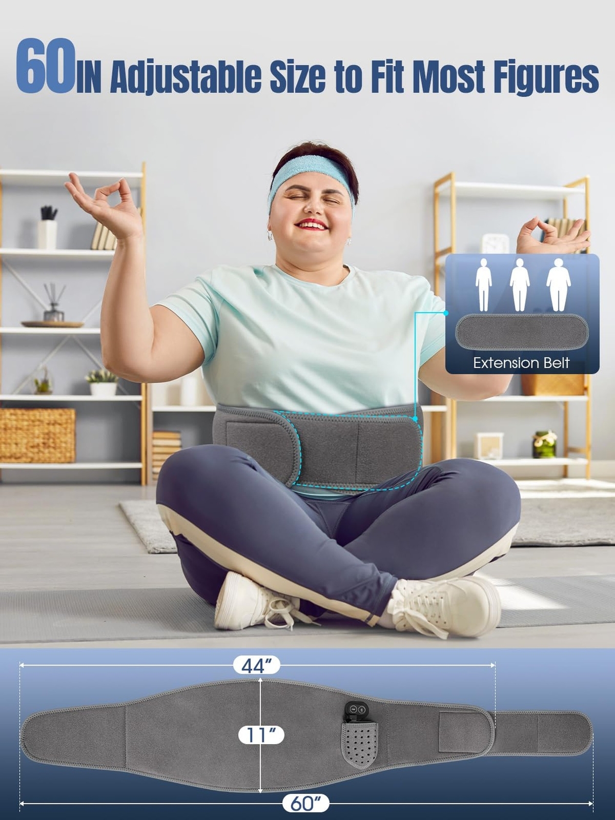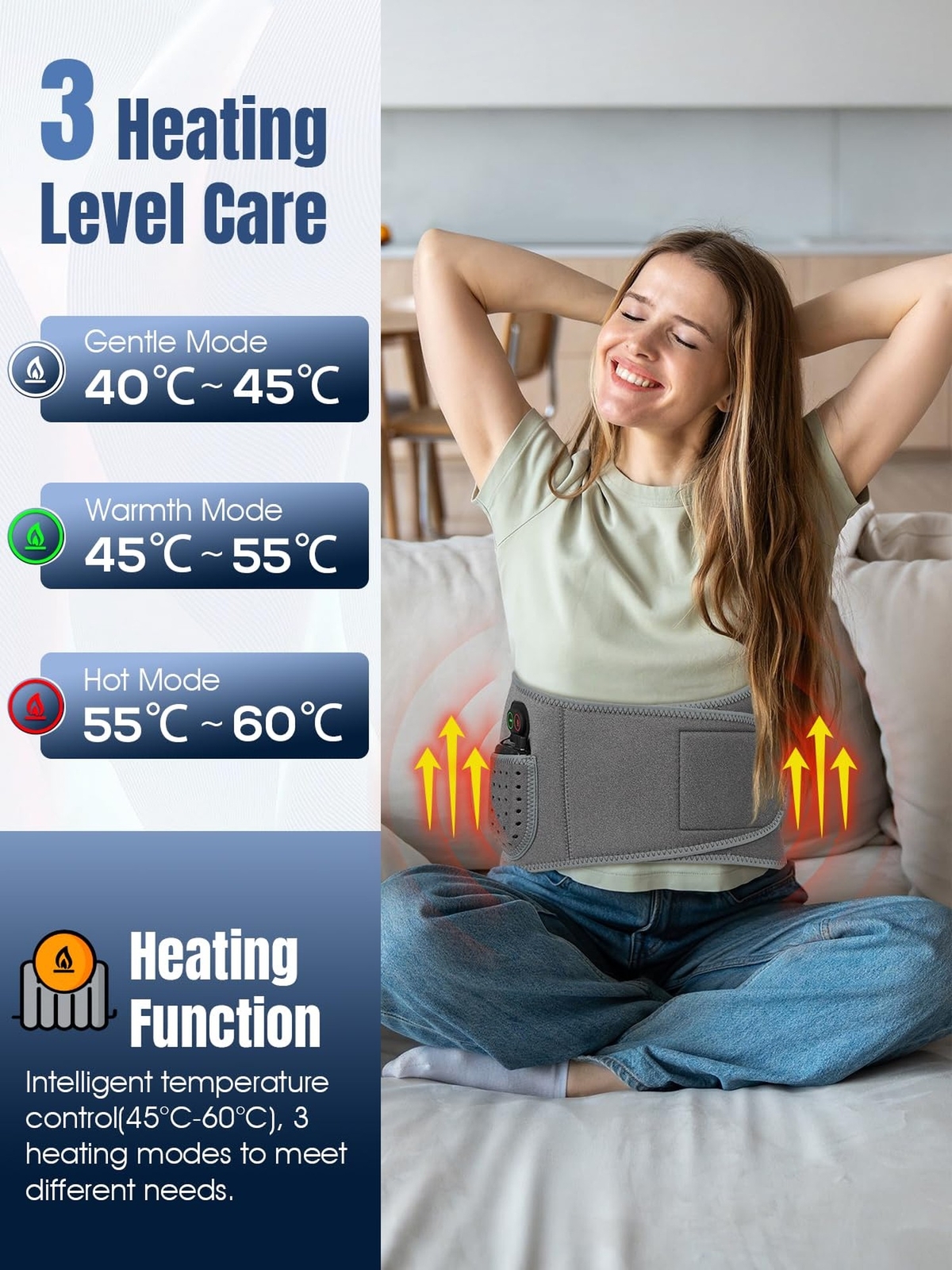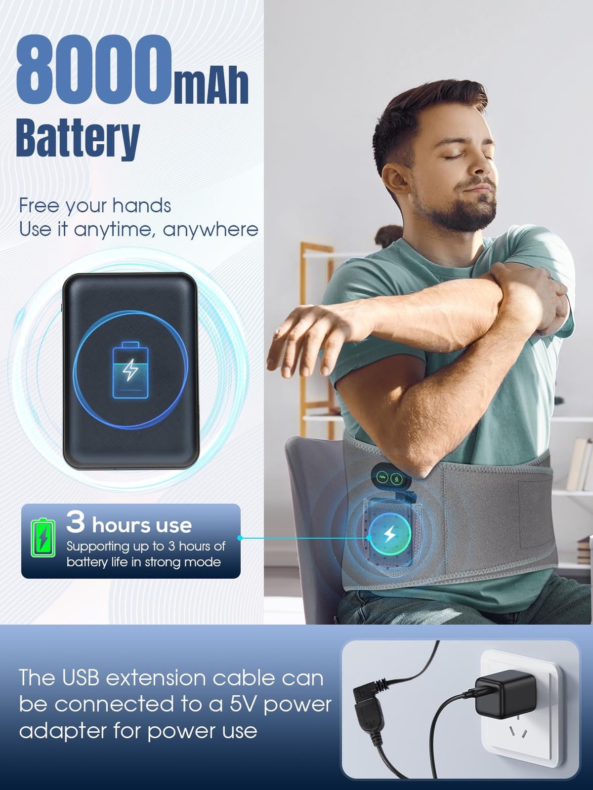 Cordless Heating Pad for Back Pain Relief,60” Large Portable Lower Back Massager with 3 Vibration and 3 Heat,Wearable Heating Pads for Cramps,8000mAh Portable Power Supply Heated Waist Belt Product Details Size: 11”x 44” Brand: Nsoela MPN: HP28112 UPC: 702602405633 EAN: 0702602405633 Special Feature: Cordless, Portable, Customizable Temperature, Dual-Motor Massage System Material: Plush Brand: Nsoela Color: Grey Item Weight: 0.91 Kilograms Package Dimensions : 9.72 x 5.98 x 3.39 inches; 2.01 Pounds Item model number : HP28112 Batteries : 1 Lithium Ion batteries required. (included) Date First Available : August 8, 2024 Manufacturer : Nsoela Country of Origin : China Intelligent Temperature Control: The heating pad for back pain relief provides customized comfort, with three heating level ranges: 40-45C, 45-55C, 55-60C, you can choose the heating temperature according to your personal preference. The heating pad also features intelligent temperature control to ensure stability and fast heating, providing instant warmth and comfort, helping to relieve sore or painful areas. Comprehensive massage: Just long press for three seconds and the device will activate. The heating pad for back is equipped with a dual-motor massage system that allows you to adjust the intensity of the three-level vibration massage. The combination of heat and vibration provides an effective solution for back pain relief, helping with discomfort in the lower back, hips, waist and abdomen. Provides a comprehensive and comfortable heating massage experience. Cordless and Portable: The portable heating pad is powered by an 8000mAh portable power bank (included), which can be used continuously for up to 3 hours even with high-performance functions. It is no longer bound by the power cord. You can use it freely when doing housework, driving or using the computer. In addition, it includes an extension cord, allowing you to switch to the adapter power cord for use at any time, without waiting for charging. Upgrade up to 60 inches: The heating pad massage is made of soft and skin-friendly plush material, combined with a fast heating film and an insulation layer to better absorb heat, effectively relieving lower back soreness and fatigue. The comfortable fabric is elastic and can be easily adjusted to better fit your waist and prevent it from slipping during use. Use the extension strap to extend the product to a maximum of 60 inches, which is flexible and suitable for most people. Comfortable Gift: This cordless heating pad combines soothing heat therapy and gentle vibration massage to relieve tension, reduce pain and provide daily comfort. Whether it is fatigue after work, outdoor activities, muscle soreness after exercise, or warmth in cold weather, our heating pad massage can provide comfort and relaxation. It is a perfect gift for Thanksgiving, Valentine's Day or Christmas, and is perfect for anyone you care about, providing warmth and comfort when they need it most.