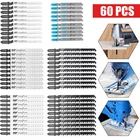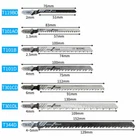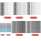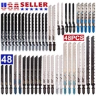 48PC T-shank Assorted Jig Saw Blades Set Wood Plastic Metal Cutting Jigsaw Blade Specification: product name:T-Shank Jigsaw Blade Material: high carbon steel Specification: set Quantity: 48 pieces Size: T118A: full length 76 mm, tooth length 52 mm T118B: full length 76 mm, tooth length 52 mm T318A: full length 130 mm, tooth length 106 mm T127D: full length 100 mm, tooth length 74 mm T144D: full length 100 mm, tooth length 74 mm T244D: full length 100 mm, tooth length 74 mm T111C: full length 100 mm, tooth length 74 mm T119BO: full length 76 mm, tooth length 51 mm T101AO: full length 83 mm, tooth length 57 mm T101B: full length 100 mm, tooth length 74 mm T101D: full length 100 mm, tooth length 75 mm T301CD: full length 112 mm, tooth length 91 mm T301DL: full length 130 mm, tooth length 109 mm T344D: total length 152 mm, tooth length 129 mm (Due to manual measurement, there will be an error of 1-3 cm.) Saw blade function: 1.T144D: it can cut wood, plywood, plastic quickly, and the thickness does not exceed 50mm. 2.T118A&T118B: suitable for cutting 0.5-1.5 mm thin metal plates. 3.T111C: used for fast cutting of 4-50 mm cork, particleboard, plywood, fiberboard. 4.T101B: used for cutting cork, particleboard, wood core plywood, fiberboard (3-30 mm), plastic/epoxy resin (diameter <30 mm). 5.T101AO (rolling type) clamp saw blade: suitable for cleaning and round cutting of all kinds of wood. 6.T101D: suitable for cutting wood, board, plastic PVC, thickness 5-50 mm. 7.T127D: suitable for cutting soft metal plates, the thickness is 3-15 mm, and the thickness of the pipe within 30 mm. 8.T244D: suitable for wood, board, plastic PVC, thickness 5-50 mm and curve cutting. 9.T301CD: cut wooden boards and boards with a thickness of 10-65 mm, and the sawn wood is smooth. 10.T318A: suitable for metal cutting. 11.T344D: cutting wood, board, plastic PVC with thickness 5-80 mm. Packing list: 5 x T118A jigsaw blades 3 x T118B jigsaw blades 3 x T318A jigsaw blades 2 x T127D jigsaw blades 7 x T144D jigsaw blades 7 x T244D jigsaw blades 5 x T111C jigsaw blades 3 x T119BO jigsaw blades 2 x T101AO jigsaw blades 3 x T101B jigsaw blades 2 x T101D jigsaw blades 2 x T301CD jigsaw blades 2 x T301DL jigsaw blades 2 x T344D jigsaw blades Feature: 【Easy to Use】 A variety of tooth types can be cut quickly or finely. Precision grinding can cut wood and plastic quickly and cleanly. 【High Quality】 These jigsaw blades are made of high-quality HCS material, which is durable and can improve quality and precise cutting. 【General Compatibility】 T-shaped handle design maximizes grip and stability. Suitable for most jig saws on the market. 【Versatility Use】 T shank blades combination to meet your different needs. It includes various accessories, which are very suitable for processing metal, plastic, wood, drywall, etc. 【Storage】 These T-Shank jigsaw blades are organized with a portable plastic box for safe and easy storage. Payment Only PayPal is acceptable. It is a safe and easy payment method for buyers. Please pay in 48 hours after you win the item(s). If payment cannot be made in five days, your order(s) will be claimed as unpaid case and the item will be relisted. Shipping All item will be carefully packaged very well with safe material and shipped to US States. Items will be sent in 2 working days, usually shipped by USPS Priority Mail. It will take about 3-5 days to US addresses. If you would like to ship by other shipment methods,please contact us. ( shipping cost will be combined for multiple items you purchase at a time.) Returns Customer satisfaction is our first priority. 30-days return is available after delivery. However, return shipping and insurance cost will be on buyers. Please email us before returning. Delivery date will be different according to UPS or USPS tracking system, so please inspect your item immediately upon arrival. Money will be return to you after the return item is sent back. We can not refund to you, if your return item is broken or damaged. Please ensure its safety. Feedback Your feedback is very important to us. If you can't leave us a "5-Star" rating and a positive feedback, please contact us without hesitation before leaving feedback. We are eager to work with our customers. We believe in communication. Give us a call or send us an email, we will make things right for our buyers. Positive feedback for our buyers will be left automatically by eBay Seller Manager Pro.