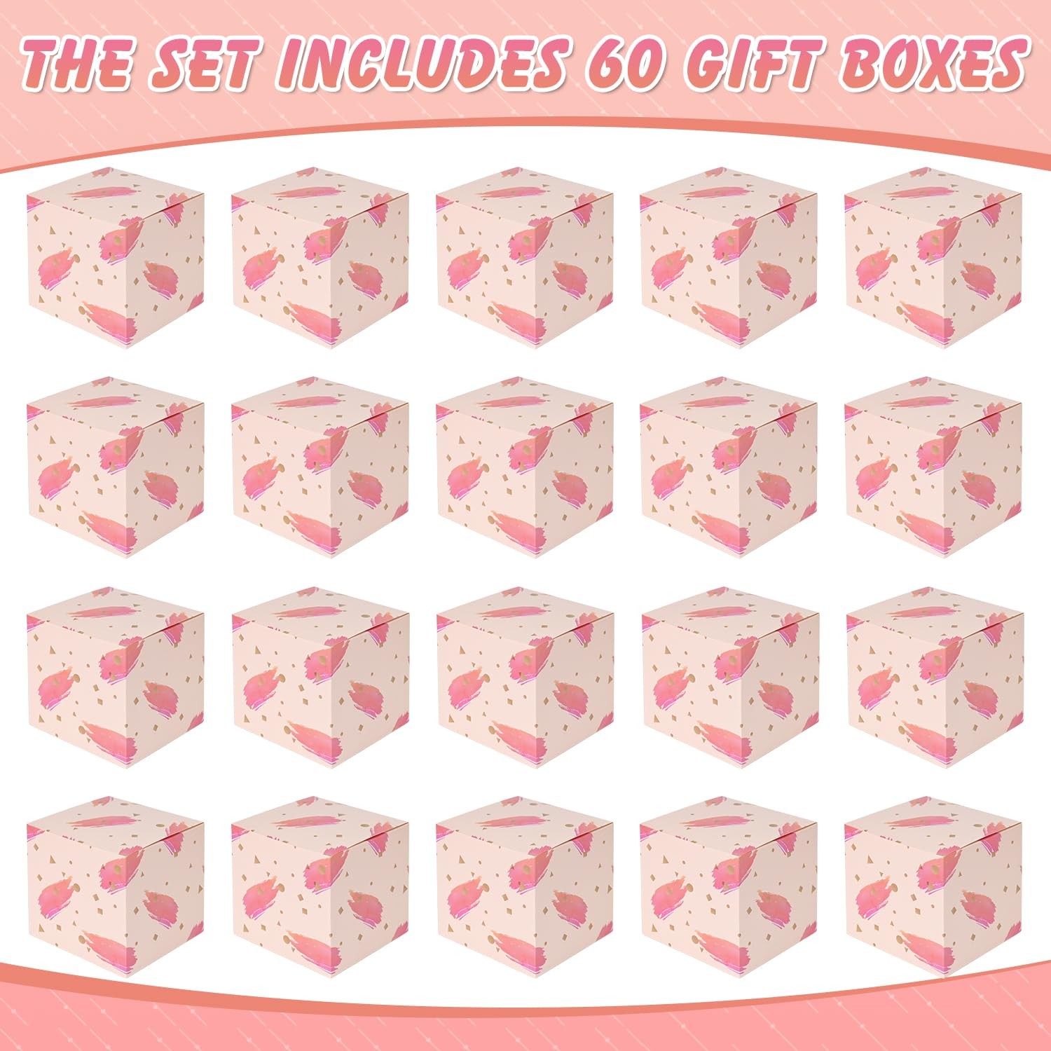 Make Your Special Occasion Unforgettable with Our 60 Pack Stunning Paper Gift Boxes! VERSATILE USAGE: Our small peach pink and watercolor gift boxes could hold a variety of items from craft items, to boutique, to party favors, to goodies for your small business and also gifts for wedding, birthdays party, baby bridal showers, anniversary, graduation. WIDE APPLICATION: The small paper boxes is peach pink and watercolor brush design printed. It's good to meet your various gift wrapping demands or décor your parties, also it would be prefect for retailers and small business store owners to wrap the products providing additial value. DURABLE AND REUSABLE: The paper pink favor boxes is made of strong paper cardboard and sturdy construction, can holds small gifts like cometics, candles, jewelry,grocery items and party gifts. EASY TO ASSEMBLE: The party favor boxes are easy to assemble when using, no adhesive or glue is required and they can also be folded flat to store easily. PREFECTY SIZE: The treat boxes is 4 x 4 x 4 inches, the sets includes 60 boxes.