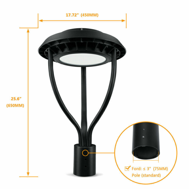 Product Description 60W LED Post Top Light For Outdoor Parking Lot Garden Roadway Street Area Light Light Up Larger Area - The 6 0w light post bring 8400Lm with SMD3030 chips, up to 140lm/watt, AC 100-277V universal voltage and 120°beam angle. 5000K color temperature of lighting is a nice choice for street light illumination. Anti-shock, anti-moisture, no glare, no strobe light, no ghosting, protecting your eyes. Commercial Grade Material - The DLC/ETL Listed post pole light fixture made of die-casting aluminum body + protective glass cover. The scientific design helps the exterior light post top to dissipate better, achieve the best use of the led lighting post. IP65 waterproof for drying, wet environment, sandstorms, snowstorms, and harsh weather conditions. Wide Application - The circular post top design give the lamp a uniform brightness and can be applied to a variety of outdoor scences, such as pathway, street, front yard, city expressway, trunk/rustic road, factories, playground, school, garden, courtyard, parking lot, public park, walkway, exterior, driveway, store, farmyard or any other commercial and industrial area. Flexible Installation - The pole mount of our post area light fits for a 2 3/8-inch OD tenon & less than or equal to 3 inch standard pole, very easy to install and transfor(Please see the video on the product page for more installation info). High performance of power factor >0.9, more than 50000hours lifespan, provides a continuous, efficient, energy-saving led lamp posts outdoor lighting environment. 5 Year Warranty - Ngtlight is professional LED manufacture, offers you lasting safety and reliability backed by a 5-year warranty to cover any defects or quality control issues. For a bulk order, email us in advance to get a different offer. Any LED technical questions or need design advice and installations, please feel free to contact us anytime. Feature: Rated Wattage: 60W Luminous Flux: 8400Lm Color Temperature: 5000K Protection Grade: IP65 Material : Aluminum Body+Glass Cover Input Voltage : AC100-277V 50/60Hz Dimension: Dia 460x625 mm Base: 2 Pins Wire Power Factor: >90% Beam Angle : 120 degrees Average Lifetime : More than 50000 hours Kindly Note Please note that the light can not be used IN the water. Please confirm the wire connection is right while installing. About Us Payment Shipping Returns Contact Us SHENZHEN NUOGUAN TECHNOLOGY CO. LTD founded in 2010. We are high-technology comany specialized in manufacture Commercial and industrial LED light. Advanced production equipment and excellend R&D ability help us to combining service ,production sell together provide top-level products to our customers. 1. Payment is expected within 7 days of auction close. Or Unpaid Items will be forfeited per eBay . 2. Taxes may be applicable at checkout as states adopt new laws and regulations regarding sales tax collection. 1. We ONLY ship to USA . 2. Orders processed within 1-2 business day of payment verification. There’s no Delivery service or courier service on Saturdays, Sundays or Public Holidays. 3. We have 3 different warehouse in US,so due to stock status and time differences, we will choose to ship your item from our first available warehouse for fast delivery. 4. We offer Free Shipping within the Lower 48 states! All packages are sent via UPS or USPS.The delivery time for UPS Ground is typically 2-5 business days. We strive to ensure 100% satisfaction for each and every one of our customers. we offer a 30-day 100% money-back guarantee on all eBay orders. If your item isn't just as you wished, simply send it back to us and we'll refund or replace your item. Please note that all returns must be authorized by our Customer Service department. please contact us though message first if you have any problem. USA Warehouse. Fast shipping! We are appreciated your purchasing form our eBay store. Office Time: 9:30 - 18:30, Monday - Saturday (UTC+8) Please contact us with eBay Message. We will respond you within 24 hours on business day. About Us SHENZHEN NUOGUAN TECHNOLOGY CO. LTD founded in 2010. We are high-technology comany specialized in manufacture Commercial and industrial LED light. Advanced production equipment and excellend R&D ability help us to combining service ,production sell together provide top-level products to our customers. Payment 1. Payment is expected within 7 days of auction close. Or Unpaid Items will be forfeited per eBay . 2. Taxes may be applicable at checkout as states adopt new laws and regulations regarding sales tax collection. Shipping 1. We ONLY ship to USA . 2. Orders processed within 1-2 business day of payment verification. There’s no Delivery service or courier service on Saturdays, Sundays or Public Holidays. 3. We have 3 different warehouse in US,so due to stock status and time differences, we will choose to ship your item from our first available warehouse for fast delivery. 4. We offer Free Shipping within the Lower 48 states! All packages are sent via UPS or USPS.The delivery time for UPS Ground is typically 2-5 business days. Returns We strive to ensure 100% satisfaction for each and every one of our customers. we offer a 30-day 100% money-back guarantee on all eBay orders. If your item isn't just as you wished, simply send it back to us and we'll refund or replace your item. Please note that all returns must be authorized by our Customer Service department. please contact us though message first if you have any problem. Contact Us USA Warehouse. Fast shipping! We are appreciated your purchasing form our eBay store. Office Time: 9:30 - 18:30, Monday - Saturday (UTC+8) Please contact us with eBay Message. We will respond you within 24 hours on business day. You may also like 100W LED Barn Light with Dusk To Dawn Photocell Outdoor Garden Yard Night Light 69.05 USD Free shipping 200W UFO LED High Bay Light Industrial Fixture For GYM Warehouse Workshop 120V 99.05 USD Free shipping 100W LED Post Top Light For Garden Yard Parking 