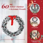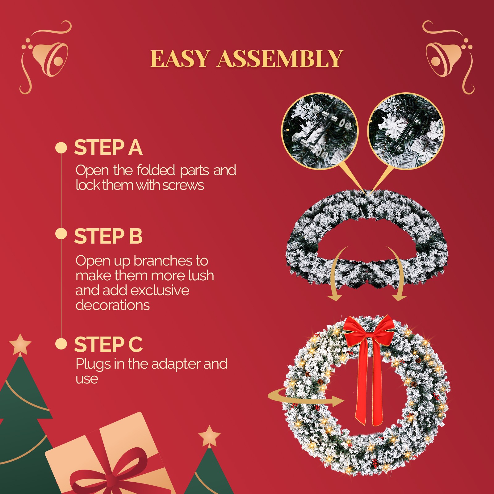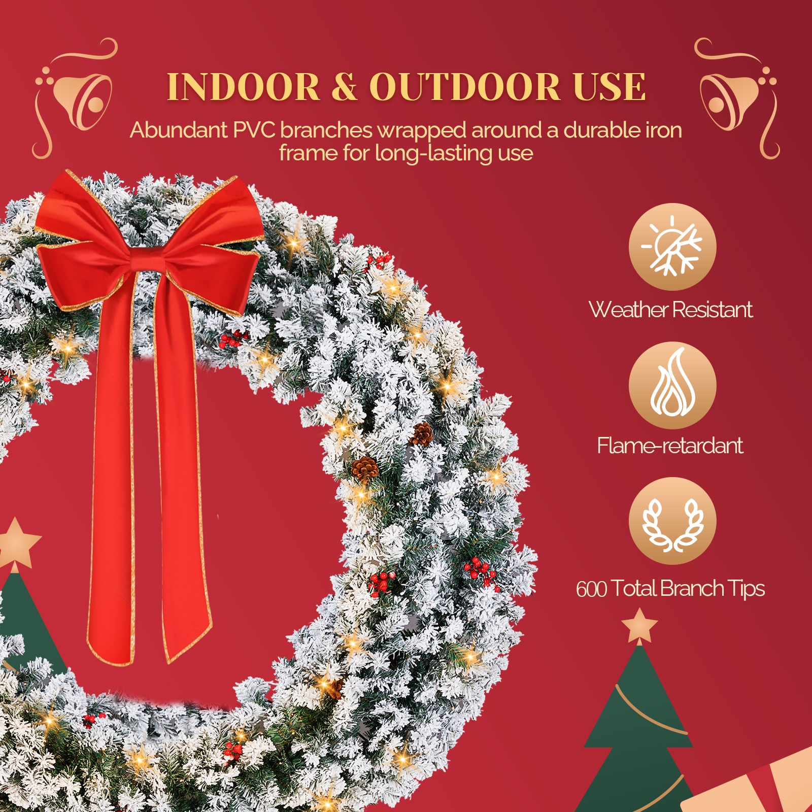 48in Pre-Lit Snow Flocked Christmas Wreath 150 Warm White Lights Decor
