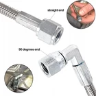 60inch Length 4AN Remote Turbocharger Sensor Steel Braided Turbo Oil Feed Line Function This steel braided turbo oil feed line connects your turbo chargers oil gallery to the engine, it drains the oil away from the bearings inside the turbo charger. Material Made of heavy duty steel for great reliability and long service life; Manufactured to specification, meet or even exceed standard in function, performance and quality. Features This line is 60 inches length, and the hose end is 4AN(0.4375” OD), comes with 1 Straight End and 1 90 Degree End. Package included 1 * 4AN hose.